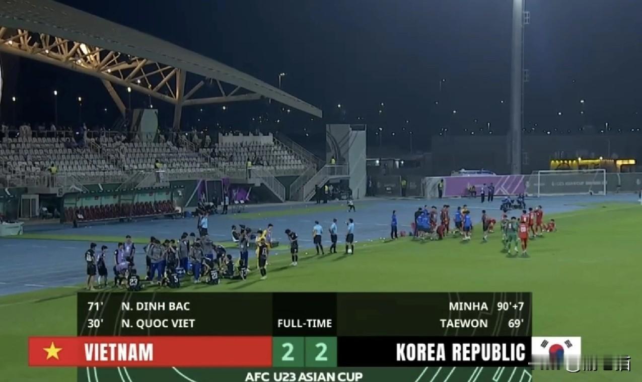 越南U23铜牌战回忆录,赢了又好像没赢 2026年1月23日,韩国对越南,U23亚洲杯季军战,大家都很关注,半决赛中国赢了越南,韩国输给日本,有点可惜。 越南队有个阮庭北,厉害,上半场第30分钟,他助攻阮国越,越南领先了,所有人都觉得他以后不得了,下半场第71分钟,他又进球了,越南再次领先,真棒,可是比赛尾声,他染红离场,越南队少一个人了,这下难了。 上半场结束,越南1比0领先,下半场第69分钟,韩国扳平了,金道现助攻金泰元,1比1了,补时阶段,信敏河补时最后一分钟绝平,2比2,越南队要打加时赛了。 少一个人,体能肯定不行,战术也不行,心理上肯定也受打击,大家都在想,这到底是怎么一回事。 阮庭北是英雄吗,还是罪人,他的红牌改变了比赛吗,补时绝平,判罚公正吗,韩国队有没有利用人数优势,很多人看完这个故事,都会去想,可惜了越南队,努力都白费了。