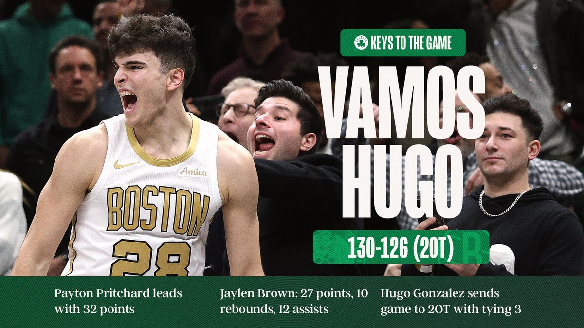 凯尔特人官方推特报道。乔·马祖拉做出最后一刻的换人调整,雨果完成了致命一击:
