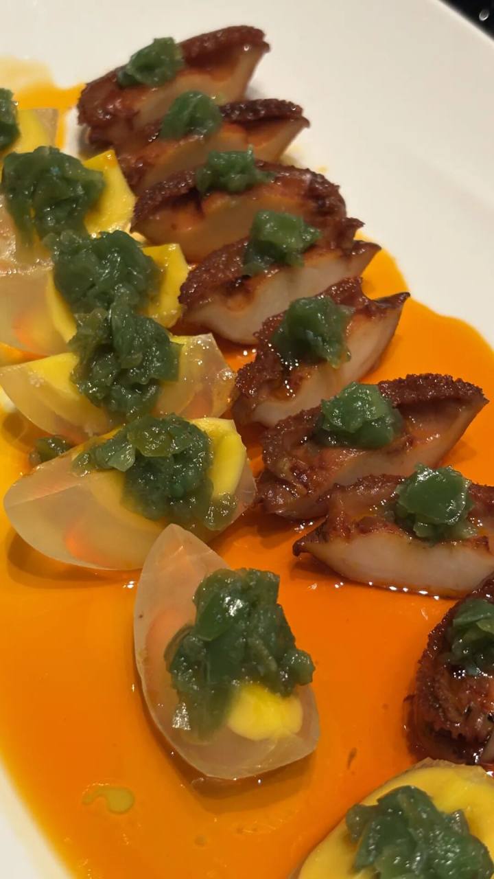 烧椒皮蛋是四川名菜,螺蛳椒烤过后捶碎,有清新椒香,皮蛋带糖心,略施小醋,中和碱味,则整体口感,爽朗开胃。
