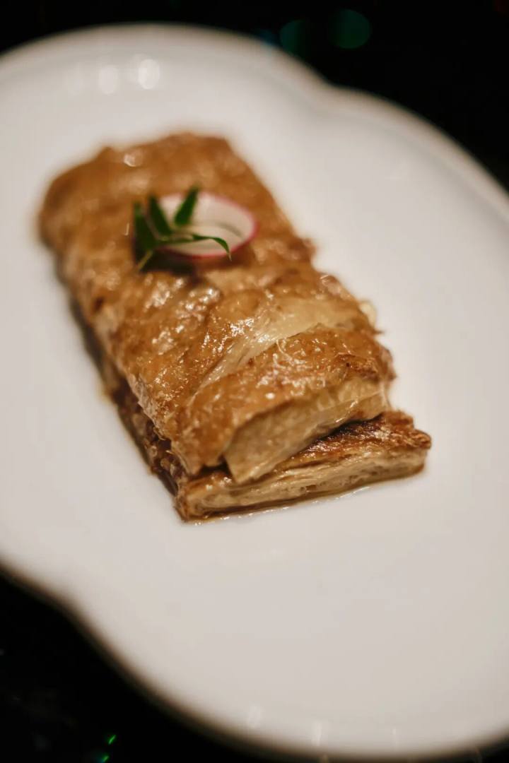素烧鹅做得很老派,豆腐皮极柔软薄嫩,层层卷裹,最外面油炸起一层酥壳。老板自言是向天香楼学习的。