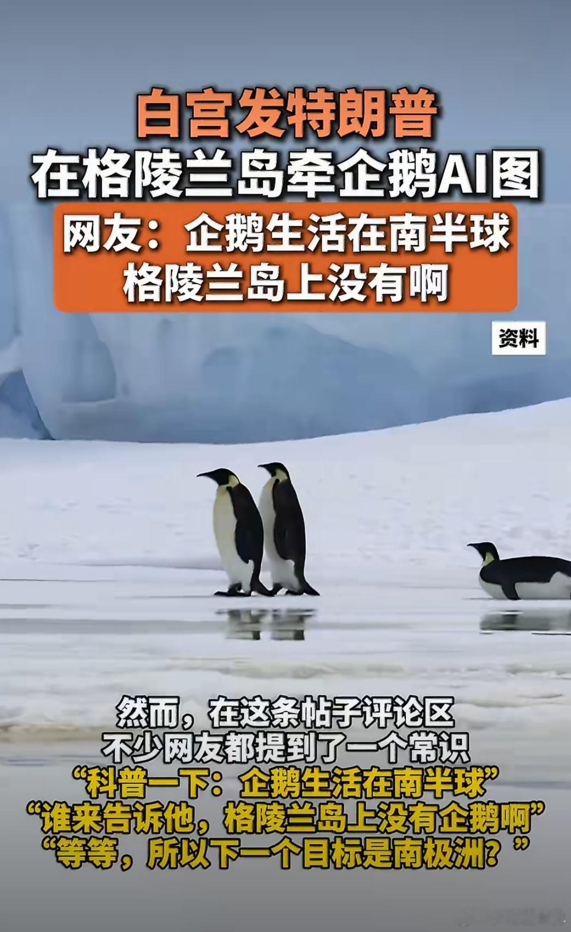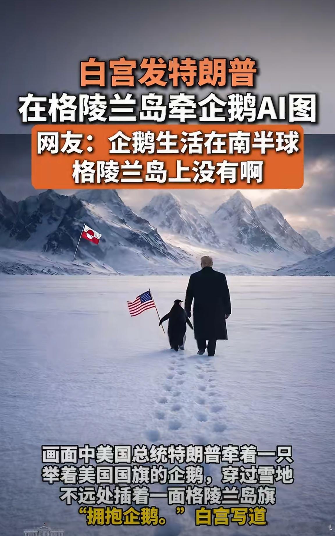 白宫晒特朗普格陵兰牵企鹅照翻车这是特朗普给的钱不够,没有招聘一个本科毕业生?还是