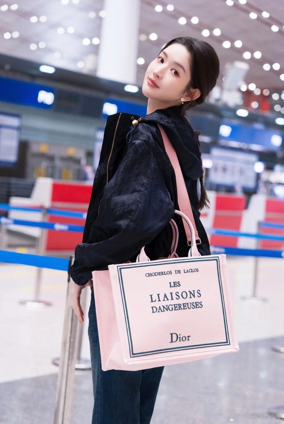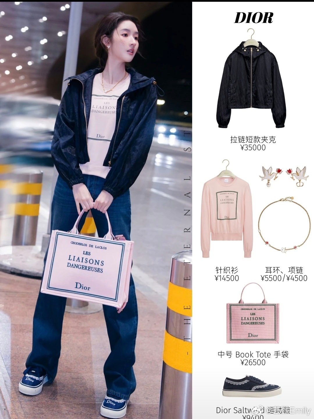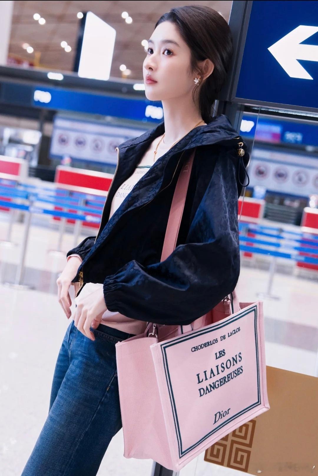 王玉雯我先去法国排队了!出发造型太美啦王姐穿着一身DIOR造型出发巴黎时装周啦!短款夹克内搭粉色针织衫,手提粉色手袋,慵懒又俏皮,耳钉和项链的白鸽与玫瑰的浪漫元素,期待她会在高定秀带来什么样的造型~巴黎高定时装周 |模登日记