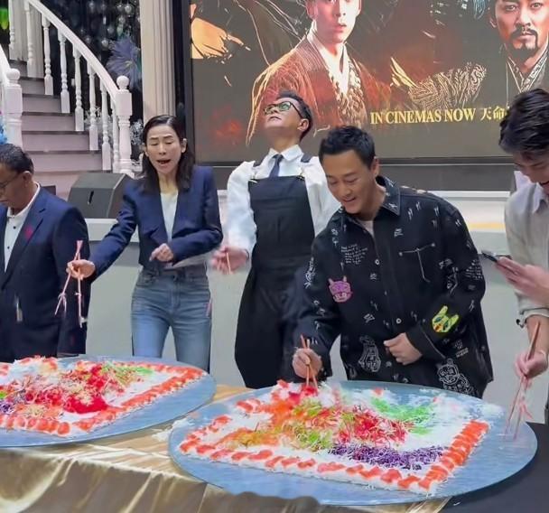 【On.cc】尋秦記》襲馬來西亞 古天樂被推綁架宣萱藝人古天樂(古仔)、宣萱、林峯及朱鑑然昨日(23日)赴馬來西亞出席電影《尋秦記》的謝票見面會,吸引逾千市民圍觀,場面墟冚。電影在當地票房突破1,350萬馬幣(約2632萬港元),成績亮眼,4人齊齊撈起,寓意風生水起,古仔非常頑皮,將食材撈得超高,嚇到身旁的宣萱退避三舍兼大叫,更搞到自己及宣萱一身都係。現場要求其中一人跟粉絲合唱電影主題曲《天命最高》,古仔即時推「兒子」朱鑑然出來:「阿仔,你同佢合唱吖!」林峯幫口:「大家都聽過我哋唱,未聽過你(朱鑑然)唱吖嘛!」古仔反問朱鑑然:「你唔係唔識唱吖嘛?」期間主持人問到會否有其他版本時,古仔稱會有加長版,但不會有其他版,並笑言:「使唔使再拍一套,宣萱再被人綁架?」令全場大笑,主持人遂問:「畀邊個綁架先?」古仔說:「你鍾意啦!」台下觀眾即時大叫「古天樂」,主持人代古仔與宣萱的CP粉絲說出心底話:「佢哋要古天樂真人綁架宣萱。」宣萱聞言醒目地打圓場:「佢已經成日虐待我喇 !」離場時,雖然場面混亂,有粉絲拿着古仔陳年的海報要求他簽名,跟古仔說:「收咗廿幾年可以簽名嗎?」想不到古仔真的停下為他簽名,令粉絲感動又驚喜。古天樂、宣萱、林峯及朱鑑然齊齊襲馬來西亞。為《尋秦記》宣傳。萬人空巷。林峯好受歡迎。齊齊撈起。嚇親宣萱!票房佳。古仔好親民。好驚咁喎!