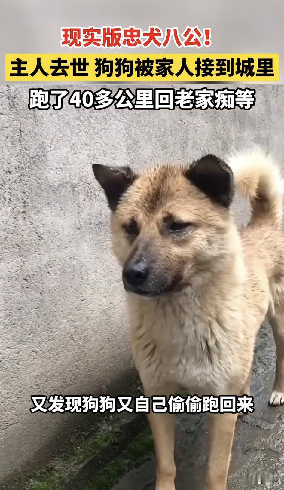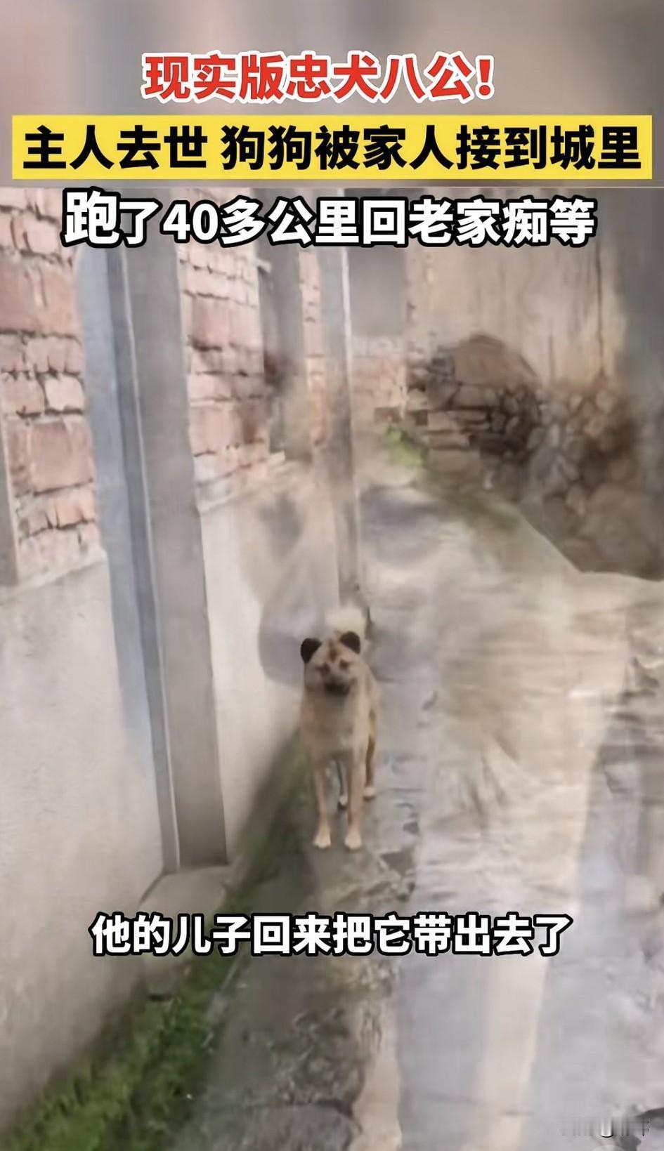 泪目了!这是现实版的忠犬八公啊!一位乡下老人养了一只狗狗,从它很小的时候就养着它,六七年来一直对它照顾有加,狗狗也非常依赖主人,可不久前老人不幸病逝,狗狗非常难过,每天郁郁寡欢的,老人的儿子见它这幅样子就把它带去了城里照顾。 谁知没多久,狗狗就不见了,他抱着试试看的心态又赶回了老家,结果真的不出所料,忠诚的狗狗居然跑了40多公里回到了老人的旧屋,当看到它的那刻,老人的儿子泪目了!他很感动,也不愿意寒了狗狗的心,于是决定让它留在老家,从此狗狗就每天守在旧屋前,偶尔也会去老人经常带它去玩的地方,而好心的村民也会经常给它食物吃,确保它可以一直生活下去。