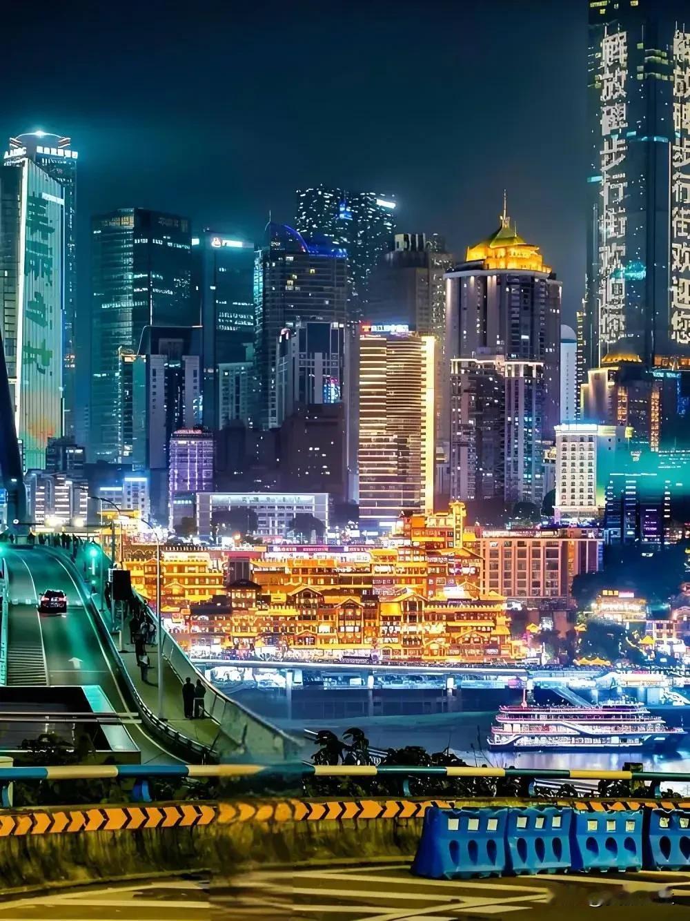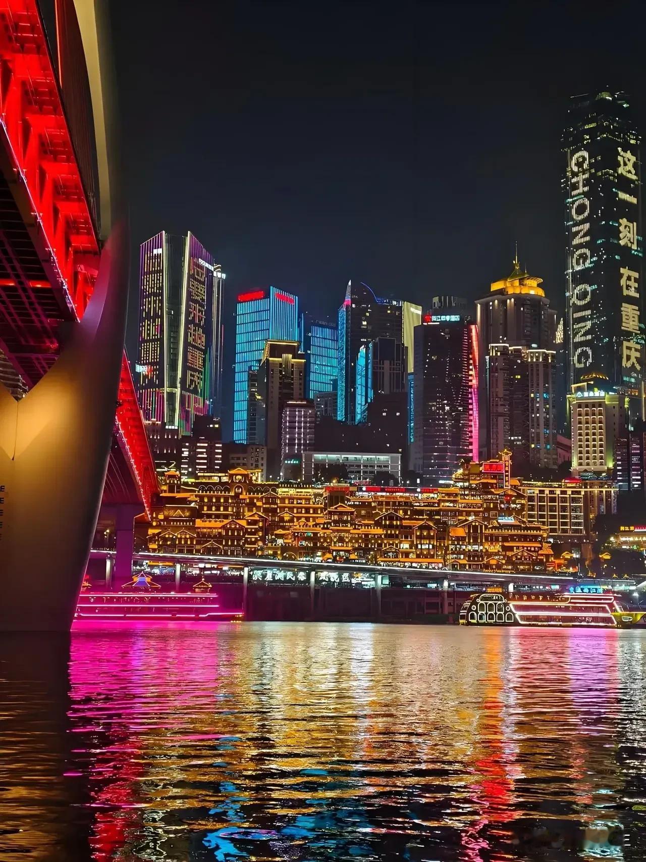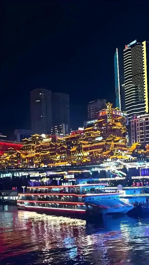 山城重庆 其夜色被誉为'立体光影诗篇',其夜景以两江交汇的星河倒影、错落有致的万家灯火和8D魔幻的建筑美学著称,是中国最具辨识度的城市夜景之一