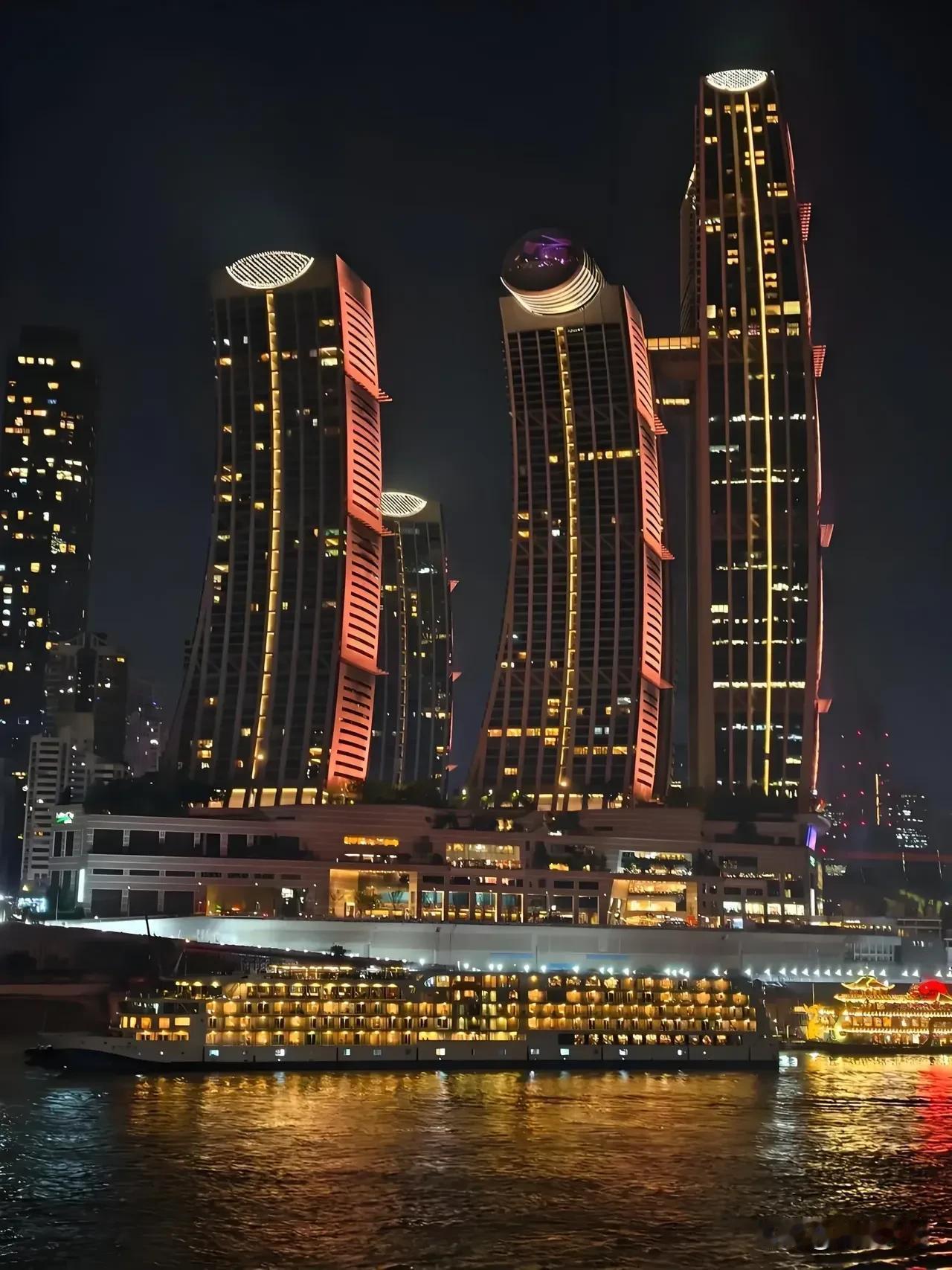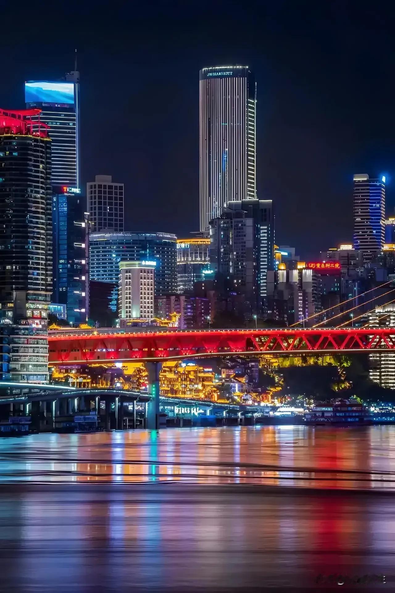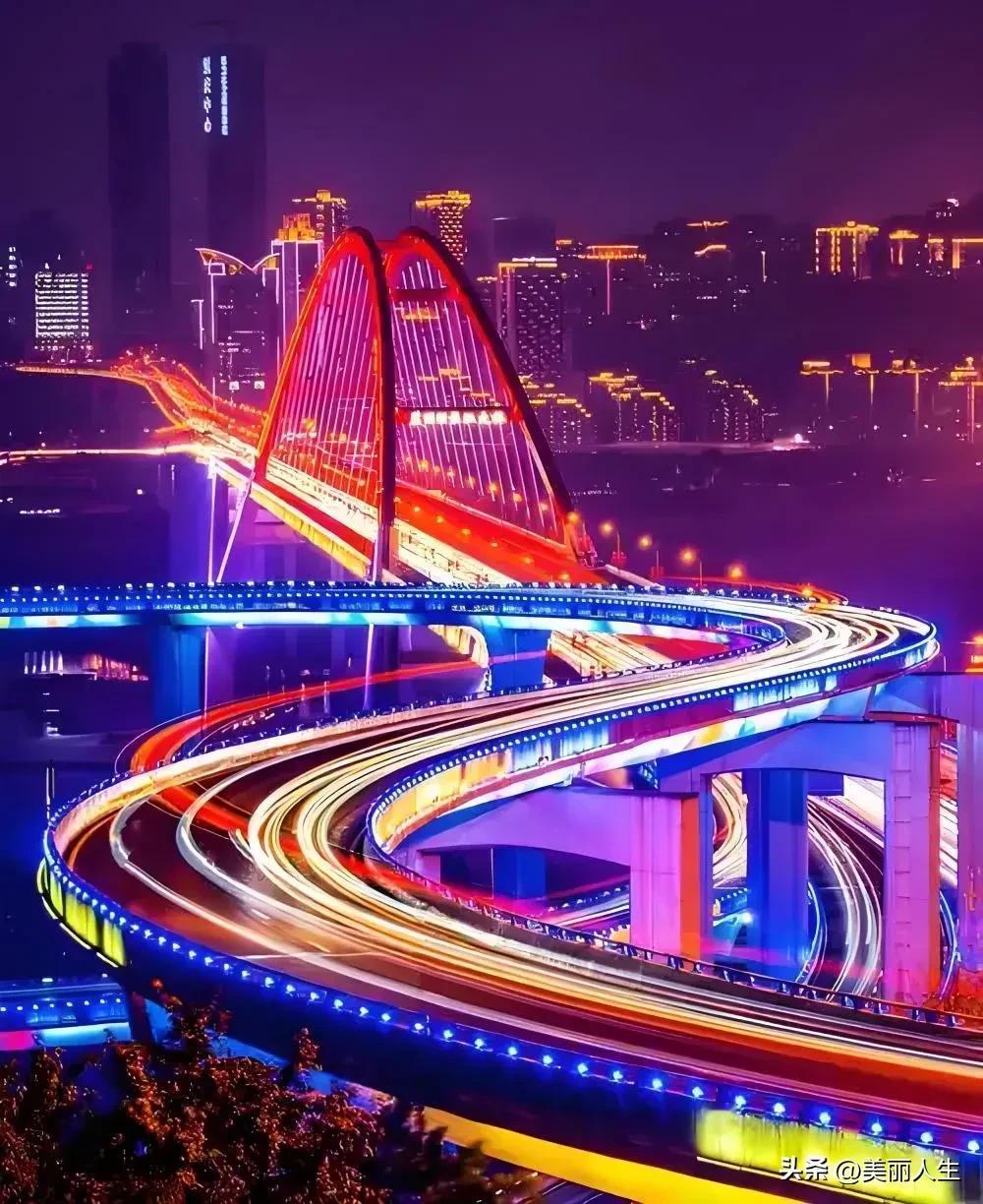 山城重庆 其夜色被誉为'立体光影诗篇',其夜景以两江交汇的星河倒影、错落有致的万家灯火和8D魔幻的建筑美学著称,是中国最具辨识度的城市夜景之一