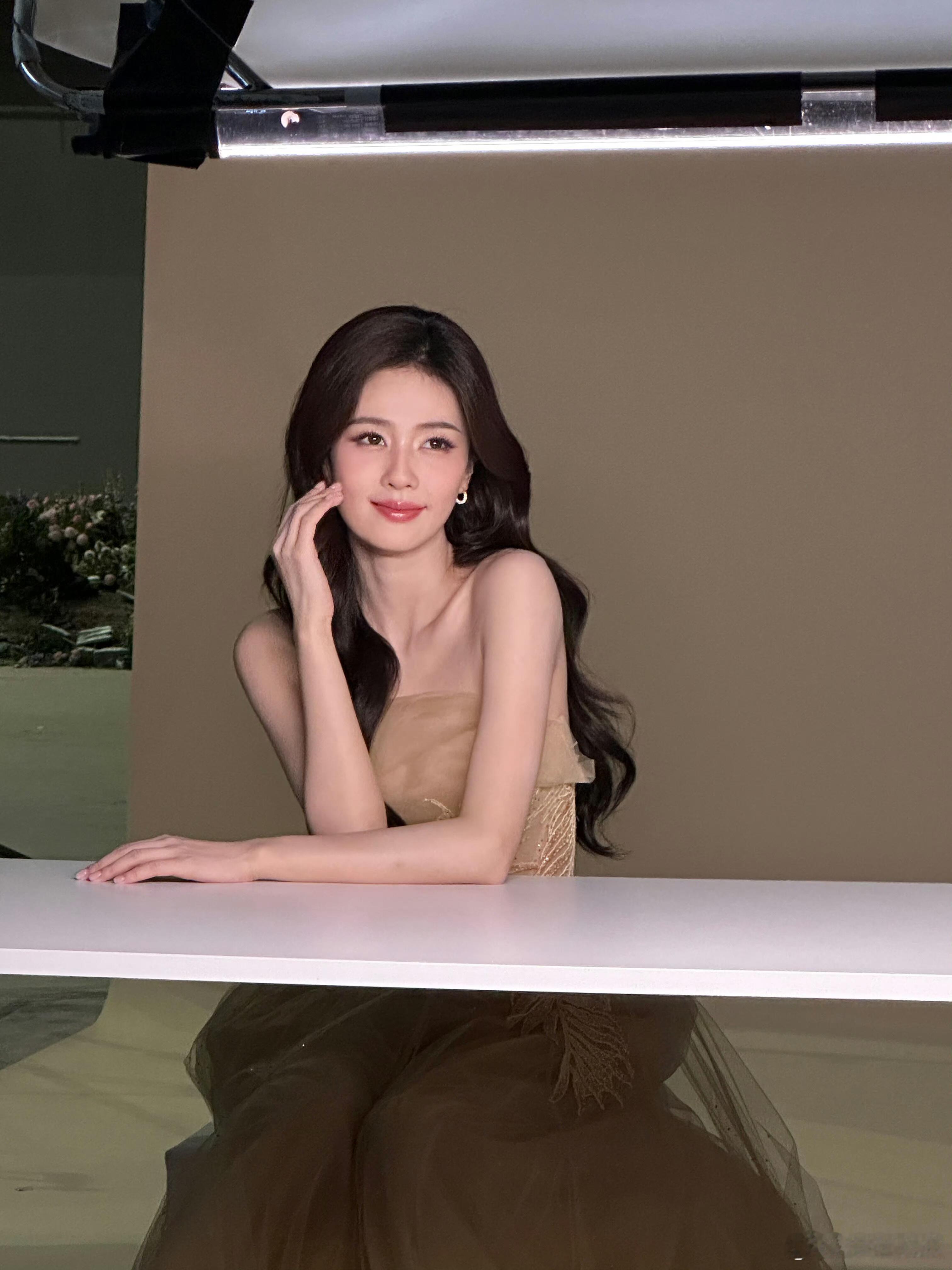 白鹿好美,粉黛微光,点缀新春白鹿好美,身穿一袭粉色挂脖裙白鹿录制亲爱的客栈白鹿