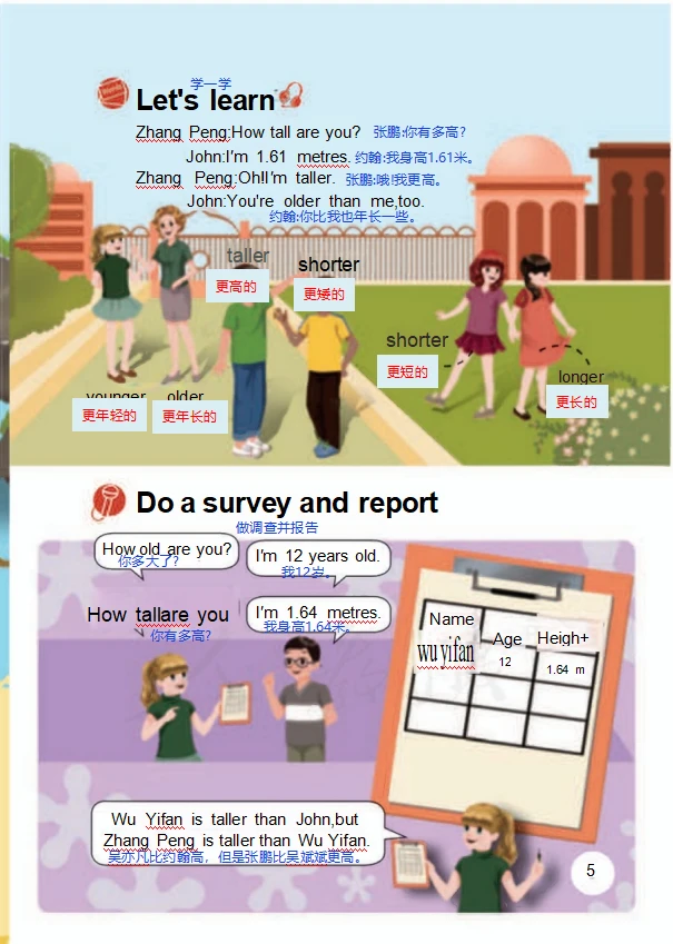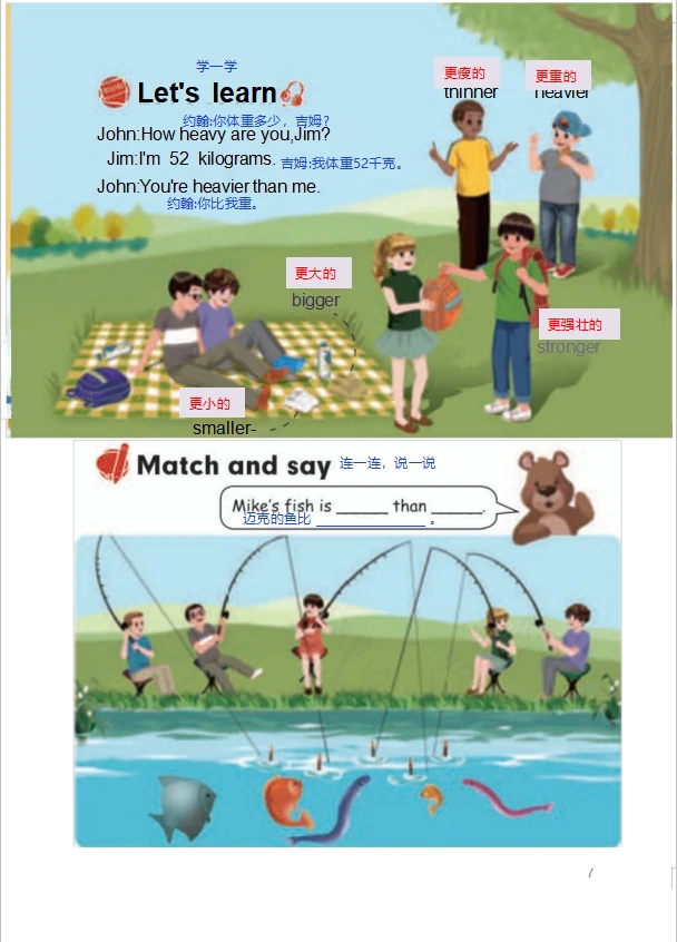 为了帮助孩子更好地掌握这些目标,家长可以尝试结合日常生活进行练习,比如和孩子一起量身高、称体重,并用英语互相比较,或者在看动画片、绘本时,鼓励孩子用“This one is taller/stronger…”来描述角色。