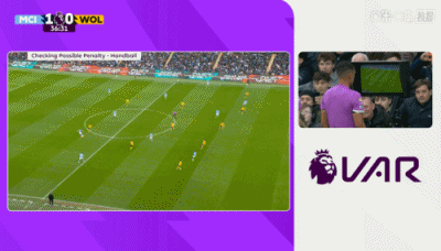 直播吧01月24日讯英超第23轮曼城vs狼队,第37分钟,马尔穆什造成莫斯克拉疑似手球。经VAR回看后,主裁判维持了场上对曼城不予判罚点球的原判。