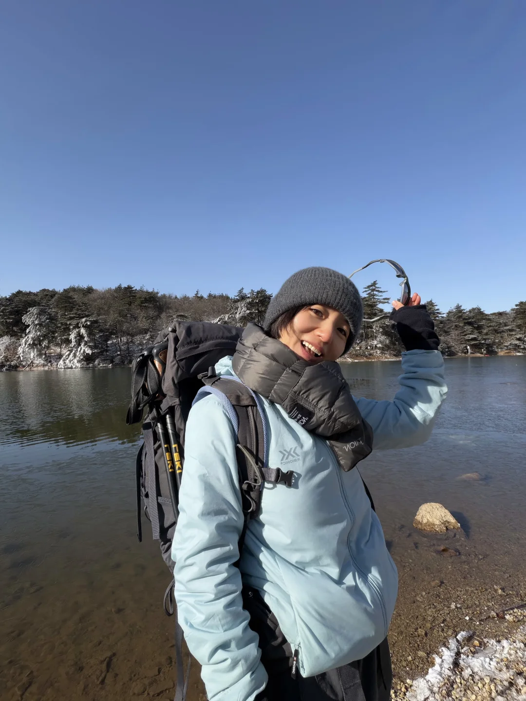 有几处设计真的很懂户外人,立体收腰剪裁+哑光质感蓝外衣在雪里超出片,拍照的时侯一点不臃肿,行动也非常轻便