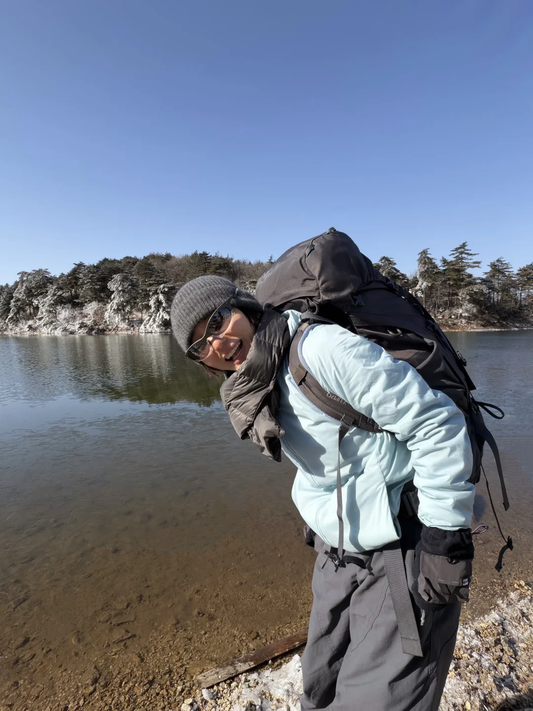 沿路积雪大多被踏平,夜晚选择湖边扎营