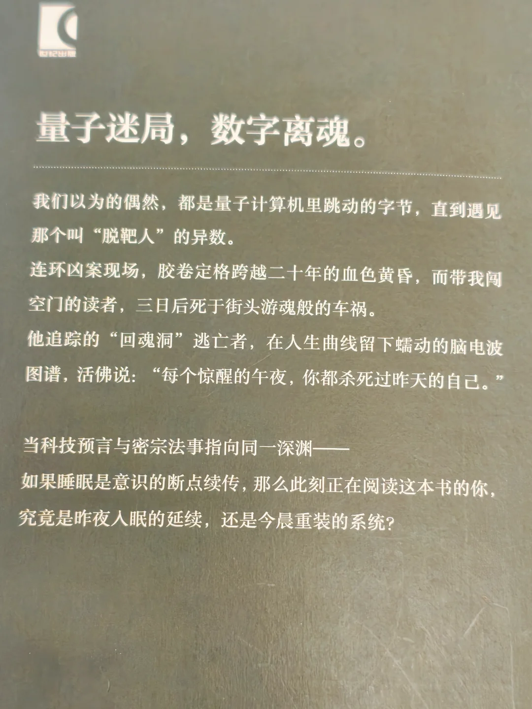 合上书时,窗外天刚蒙蒙亮。我盯着手机屏幕里的自己,突然想起书里的疑问:此刻的我,是昨夜入眠的延续,还是今晨重装的系统?