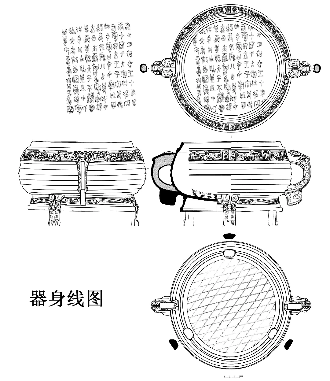 2020年4月至12月,山西省考古研究院联合运城市文物工作站、垣曲文物旅游局对垣曲北白鹅墓地进行了考古发掘。本次发掘面积为1200平方米,共发掘两周时期墓葬9座,灰坑17个。此次发掘墓葬级别高、规模大,出土器物种类丰富,包括铜、玉、石、漆、陶、骨、蚌贝、铅、金、漆木、皮革、麻绳、竹等各类文物总计500余件套。其中,礼器类有鼎、甗、簋、盨、铺、罐、鬲、盘、盉、方彝、匜、壶、罍、尊、爵、觯、杯、勺等,礼乐器有编钟和石磬。最重要的收获是发现带有铭文的铜器近50件套,铭文内容丰富,文字清晰,计14篇。 其中M3出土带盖簋4件,命名为:夺簋,大小、形制、纹饰基本相同;其中除了1件盖不见铭文,其他3件盖上有铭文。今介绍簋M3:21与盖M3:35,因其器盖相配。簋(M3:21)为敛口,鼓腹微下垂,底近平,下接圈足,较矮,下口出沿。腹接一对半环形耳,上为兽首,下有垂珥。圈足下附三个扁支足。器体上腹饰一周窃曲纹带,较窄,中、下腹有六道瓦纹,圈足部一周斜三角云纹,以出脊兽面纹和耳部兽头为界分为四组。盖(M3:35)的盖面微弧起,边沿近直下折,中间有捉手,近喇叭形。盖面近里两道瓦纹,外面一周窃曲纹,以2个出脊兽面纹分为两部分。 盖内铸有铭文12行94字(含重文2字),器内铸有铭文10列94字(含重文2字),内容与M3:35簋盖相同,唯行款与字体略有差异。 铭文释文:“唯正月初吉,王才(在)成周。庚午(格)于大室,井叔内(入)右夺即立。王乎(呼)内史微册令(命)夺曰:令(命)女(汝)(司)成周讼事眔殷八(师)事。易(赐)女(汝)赤巿、䜌(銮)旂,用事。夺(拜)䭫首,敢对扬天子丕显鲁休令(命),用乍(作)朕皇且(祖)中氏、朕文考(釐)孟宝尊簋。夺其万年眉寿永用,子子孙孙宝。” 铭文大意:在正月初吉这天,周王在成周。庚午这天,来到太室。井叔作为右者傧导夺进入指定位置,周王命令内史微册命夺:“命你负责成周的诉讼之事,并负责成周八师的管理 ,赏赐你赤色敝膝,銮铃和旗,你要好好做事。夺拜手稽首,称扬天子伟大显扬的赏赐与册命,因此给自己的祖先仲氏和有文德的父亲釐孟作了这个祭器。夺祈求长生永命,子子孙孙要永以为宝。