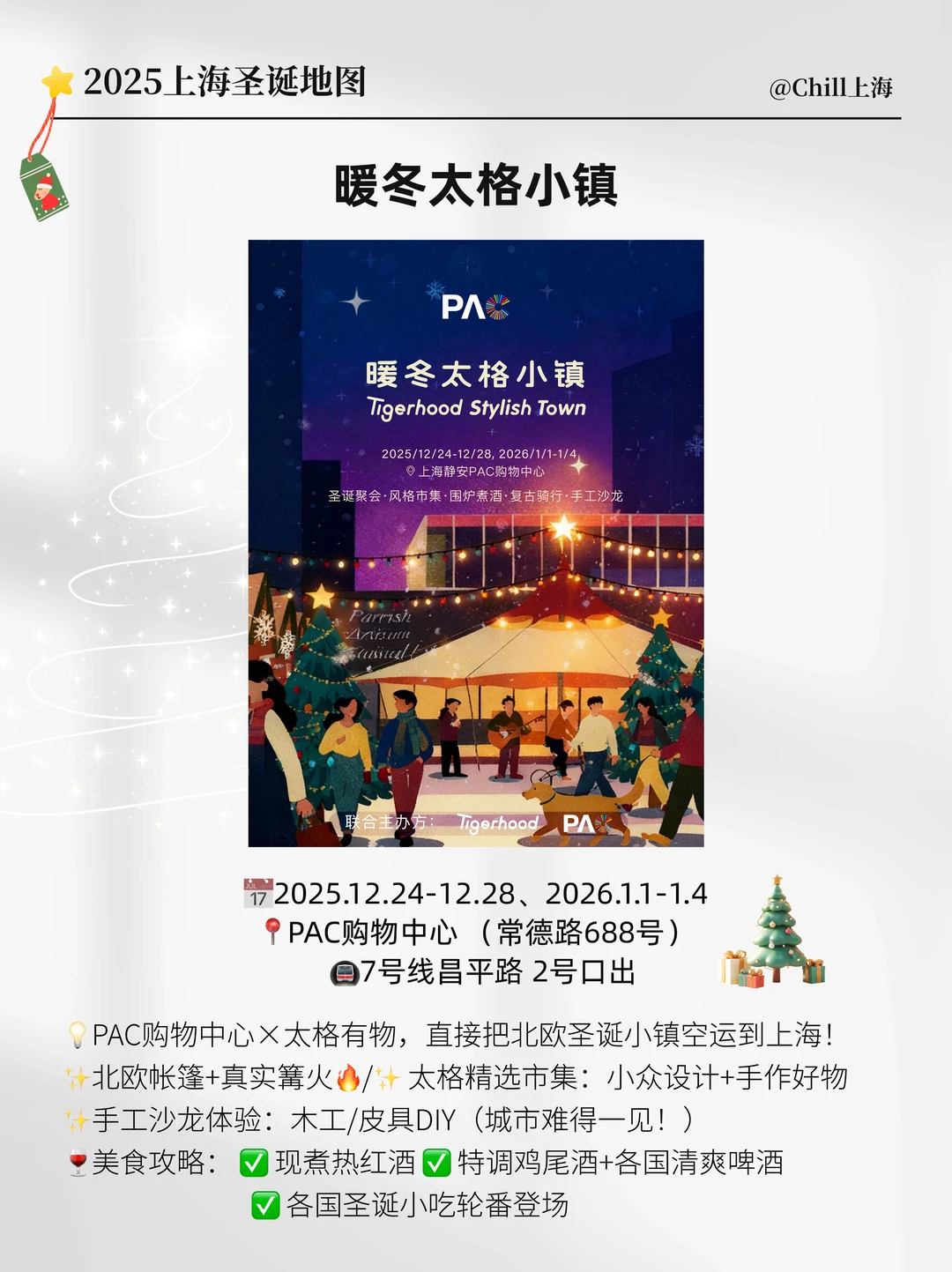 ⭐️暖冬太格小镇:这次圣诞氛围黑马!PAC购物中心×太格有物,直接把北欧圣诞小镇空运到上海!有市集、和圣诞帐篷⛺️篝火~氛围绝了!还有各种手作、好物、红酒、各国小吃等等!