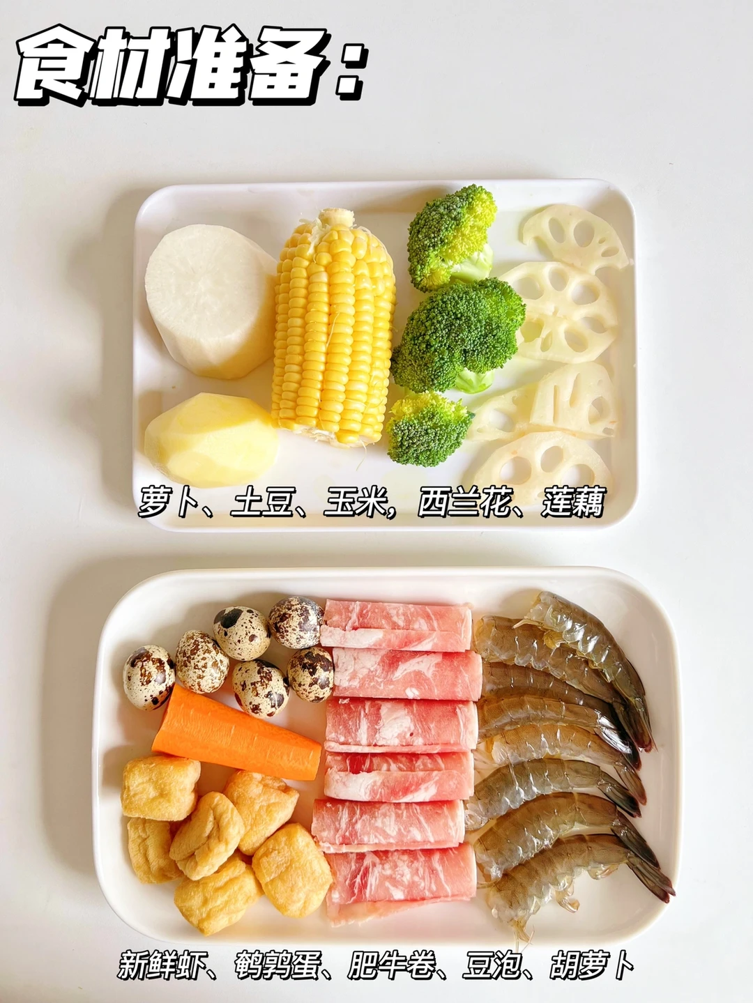 食材准备:只要家里有的都可以安排,尽量丰富一些就可以啦