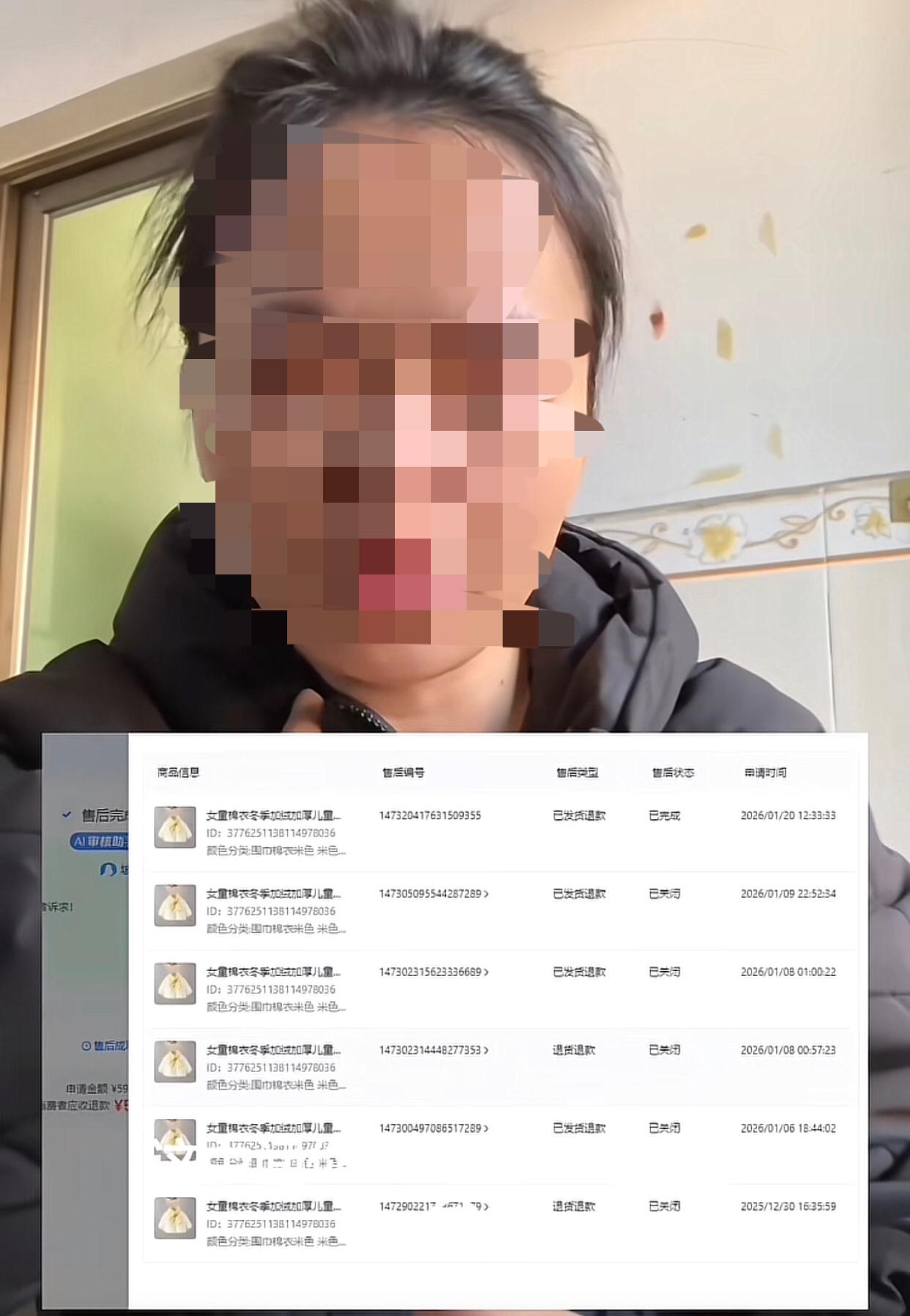 仗着记者身份零成本以旧换新,白瓢成功后,还小人得志般追着商家输出,没想到转头就被网友找出全家信息并闹到工作单位。 起因是一个有九千多粉丝的网红女记者,11月21号网购了一件90尺码的童装,过了一个月之后又在同一家店铺下单了一件同款式110码的衣服。商家以为是回头客,可当她收到第二件衣服的时候立马把第二笔订单申请了退货退款,但退回来的却是第一件下单的90尺码。 老板拆开快递人都傻了,这名宝妈把第一件下单的90尺码退回来就算了,而且这件衣服明显已经穿了很久了,上面沾满污渍,袖子都磨成哑光黑了,完全无法二次销售。最后商家以货不对板为由拒绝退款。没想到这名宝妈急了,连续申请了6次售后要求退货,就连平台得知事情原委之后也是坚决维护卖家的权益。 结果宝妈见便宜没占成,气的她多次在后台追着商家口吐国粹,同时还在继续申请退款。由于最后一次商家没来得及拒绝,系统自动给对方退了款。 商家见此也只是想自认倒霉,但没想到收到退款的女记者却洋洋得意,全程发消息追着商家言语输出,不仅祝商家关门大吉。而且明明她自己也是一名母亲,却还咒商家孩子,把老板气的只能在网络上哭着倾诉。 好在这届网友十分给力,不出一小时就找出这名女记者全部信息,以及她上班的工作单位。女记者得知后立马把账号私密了,她的单位账号得知此事后也表示会立马进行处理此事。
