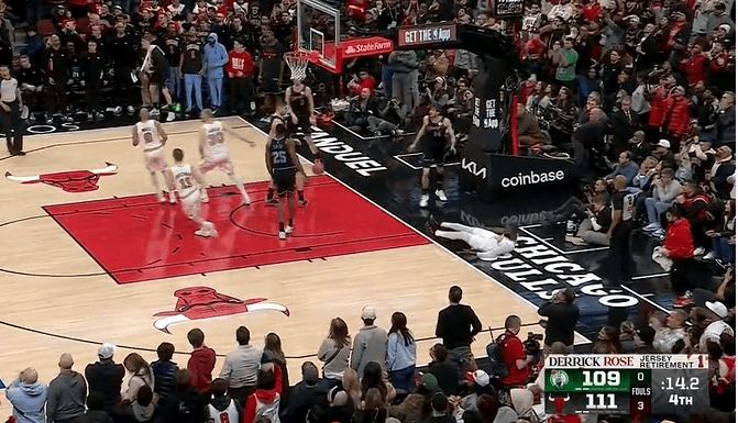 比赛第四节,杰伦-布朗转换拉杆上篮得手,绿军最后14秒扳平比分。