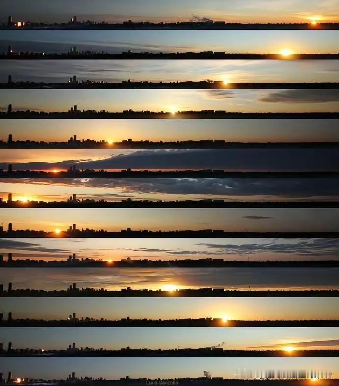 日出一年的变化-摄影师Luca Vanzella在加拿大阿尔伯塔省埃德蒙顿市(53°33′N,113°30′W)拍摄的。