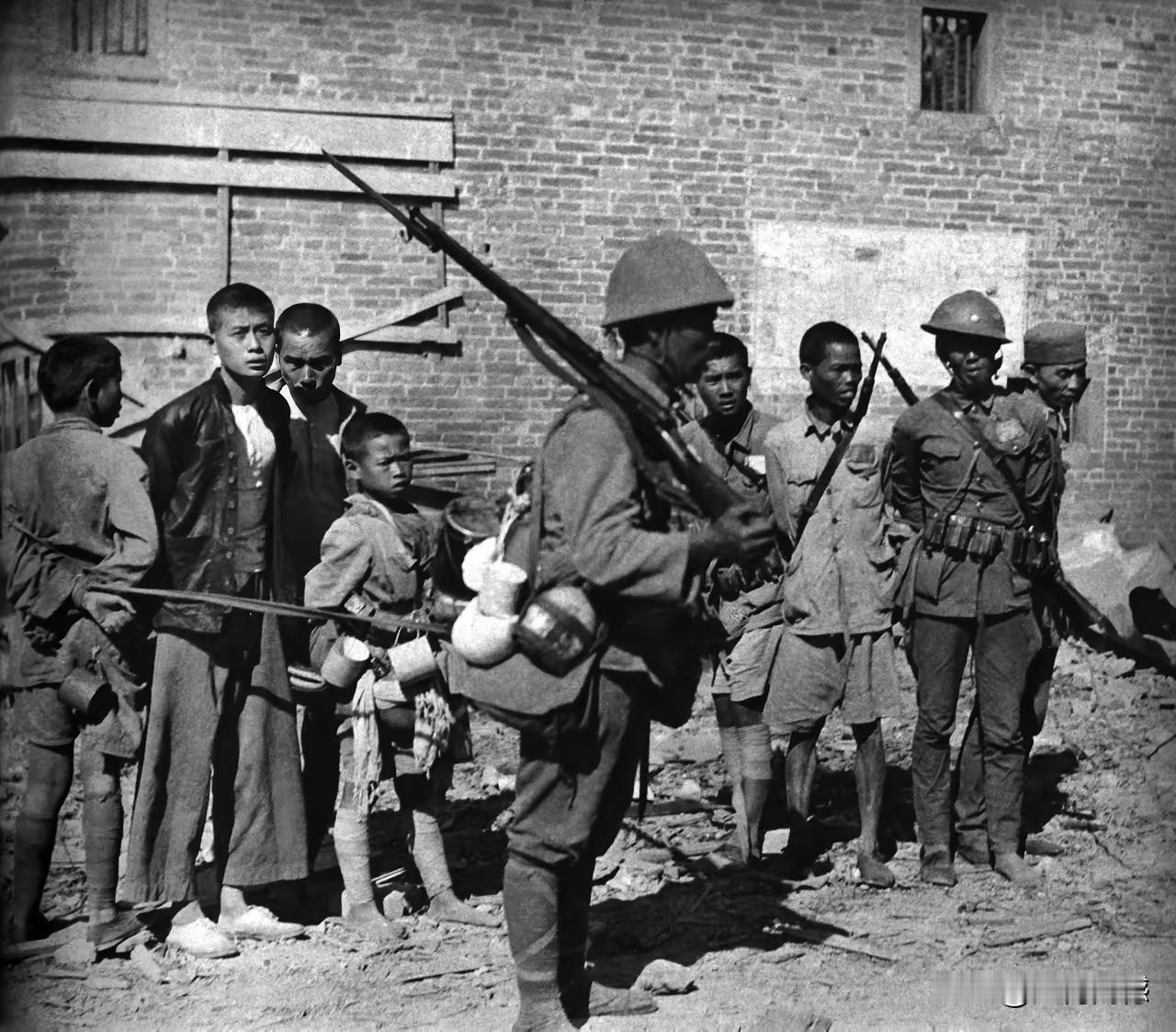 在这张照片中,我们能够看到,被日本鬼子俘获的这些人当中,还有一个未成年的孩子,看样子也就是十多岁的样子,面对这些荷枪实弹的日本鬼子,这个男孩并没有害怕,脸上的神情非常的镇定,虽然他年纪小,但是展现出来的意志和决心,让我们看到了先辈们的英勇和无畏,向抗日先辈致敬,他们是真正的民族英雄!