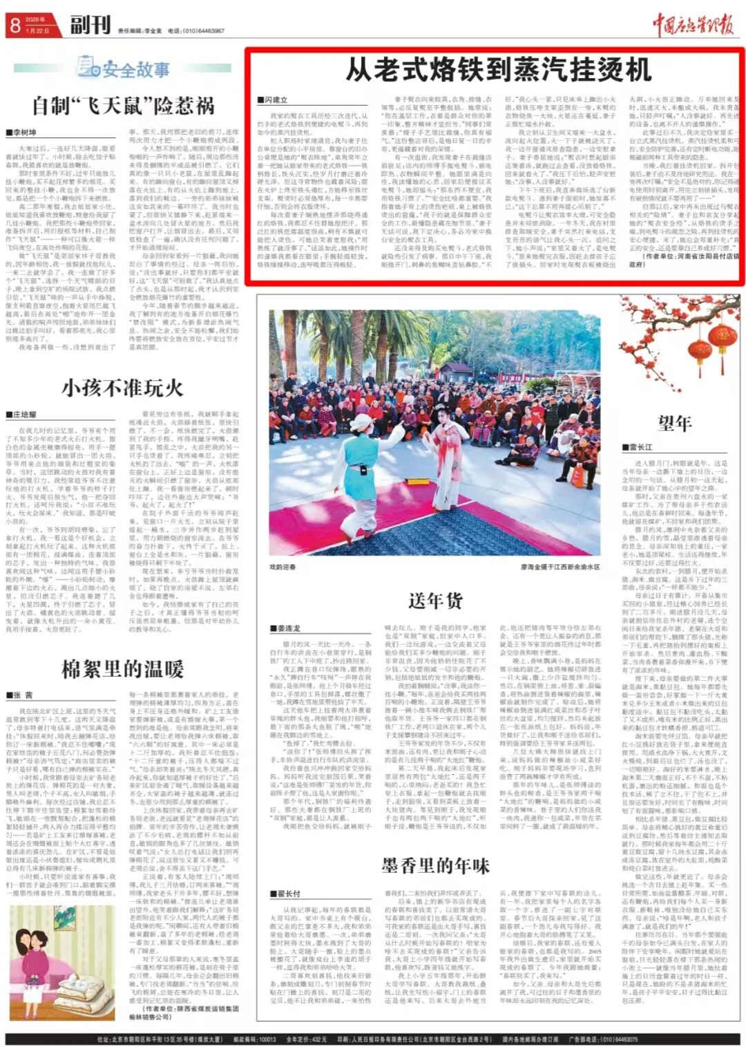有一次逛街,我发现妻子在裁缝店前驻足:店内的师傅手握电熨斗,插电即热,衣物瞬间平整。她眼里满是向往,我读懂她的心思,回家后便提议买电熨斗,她却摇头:“那东西不便宜,我用烙铁习惯了。”“安全比啥都重要。”我指着她手背上的烫伤疤痕、桌上被烙铁烫出的窟窿,“我干的就是保障群众安全的工作,最懂隐患藏在细节里。”妻子无话可说,我下定决心,务必为家中换台安全的熨衣工具。