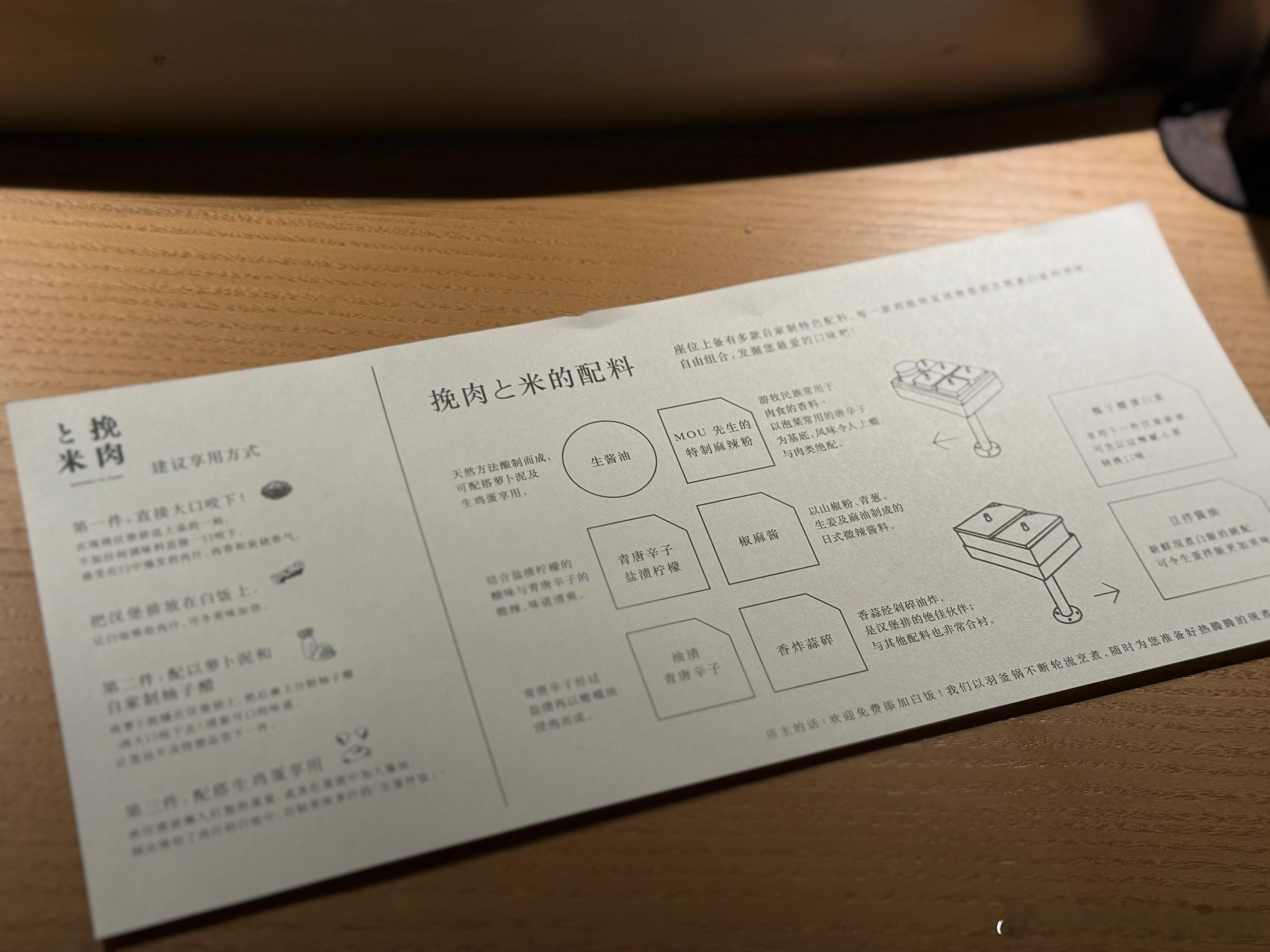 东湖路新开的:挽肉と米源自东京人票选出“最想居住街区”吉祥寺的汉堡肉专门店。一份单人汉堡肉三吃套餐128,包含可续的越光米、味增汤和三块肉。说实话味道确实不错,是日本原汁原味的水平,但上海好吃的东西太多了,汉堡肉说到底就是定食并非高级日料。所以尝鲜过后,火爆能坚持多久我打个问号。