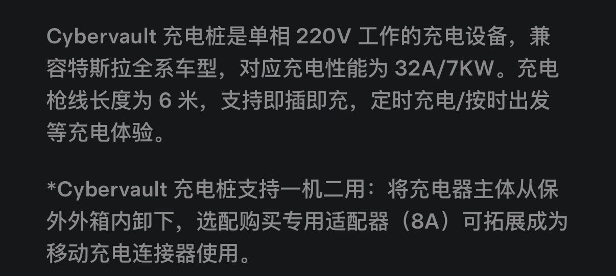 好久不研究特斯拉的充电桩,发现原来演变出了两种…图一,可以理解为一个SE版本,只能7kw慢充,但好处是自带了箱体,我当年就自己买了个箱子把充电桩罩起来…图二,可以理解为多功能版本,交流快充慢充都行,根据车型和电压的不同能从7kw干到16kw,基本上是原来标准充电桩的价格有点意思,之前还总是吹只有特斯拉能一个家用桩随便兼容交流“快慢充”,现在也打脸了….特斯拉特斯拉