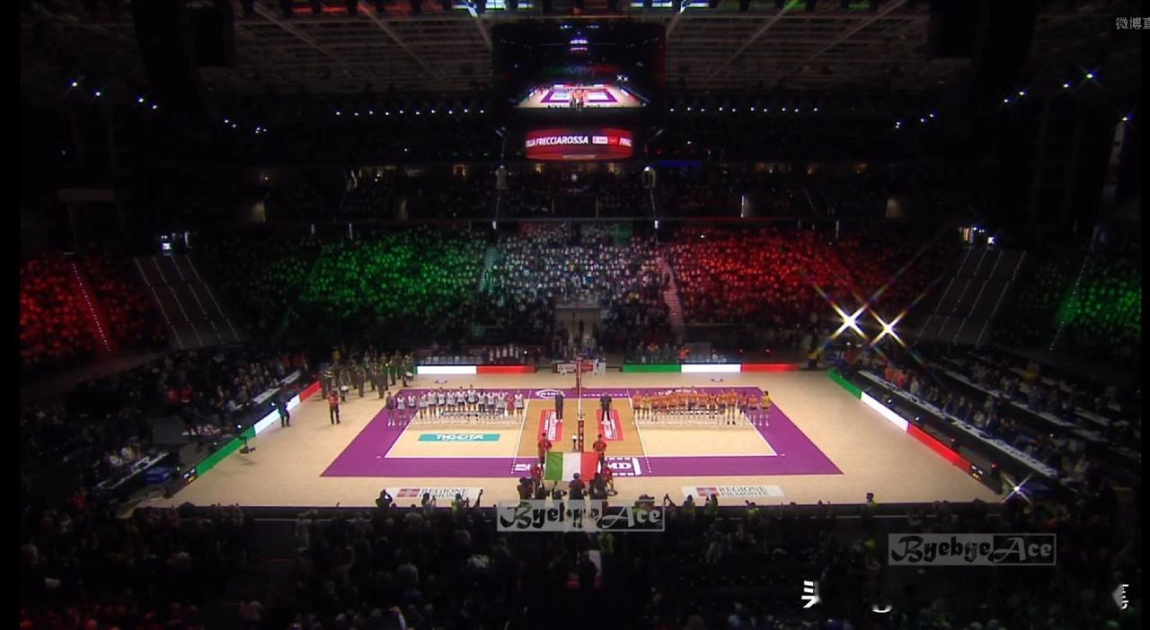 意大利杯决赛正在都灵的伊纳尔皮体育馆举行。对阵双方是朱婷领衔的科内利亚诺与安特罗