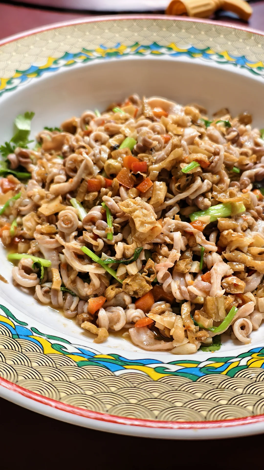 图四是炒肚丝,用猪肚的精华部位切丝爆炒,极脆。自制的臭鳜鱼蒜瓣肉结实,又臭又香。腊排骨炖老豆腐,爆炒腰花也都极好。用红烧肉方式烧的冬瓜很别致。这家的味道与性价比都极高,强烈推荐。