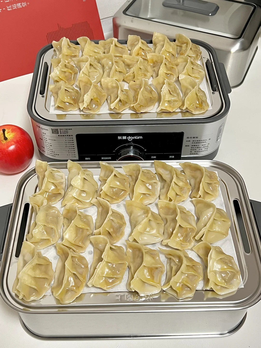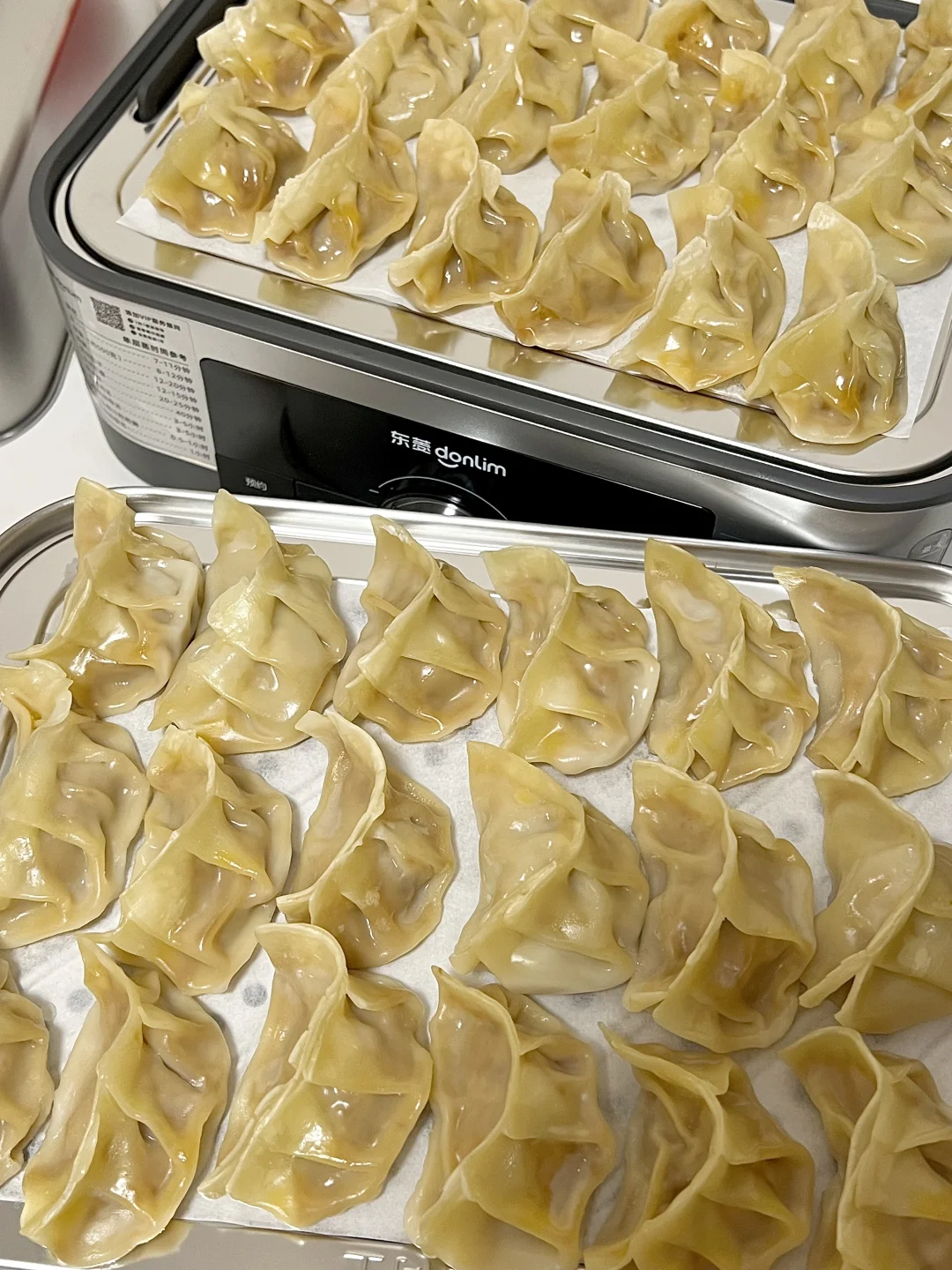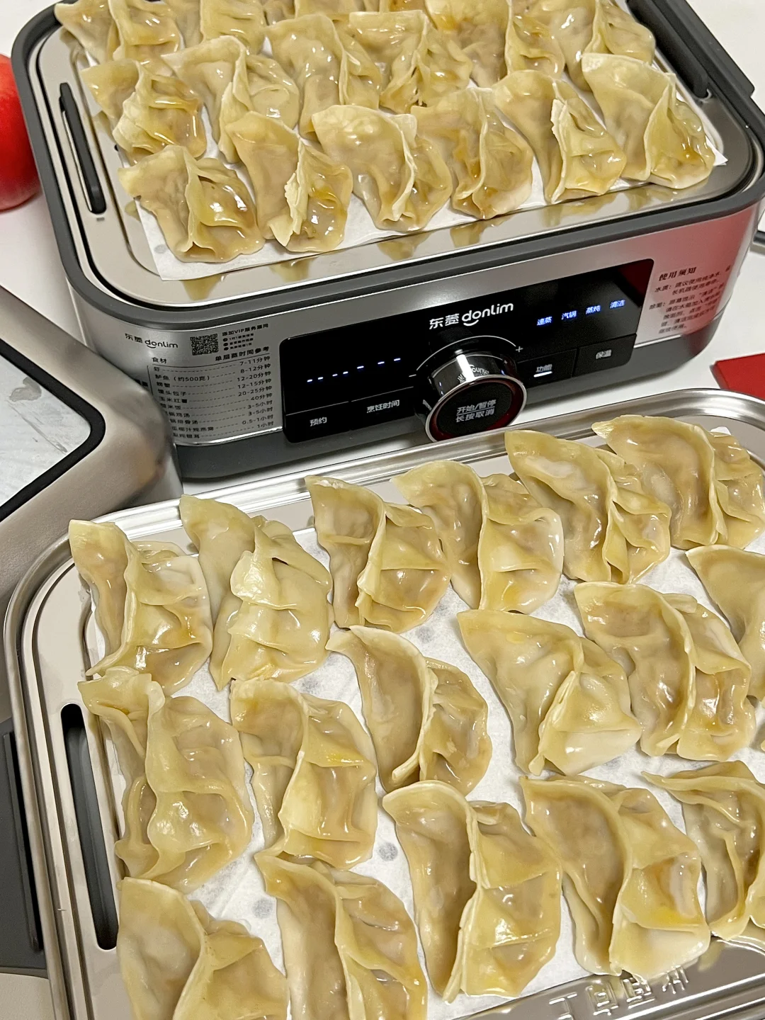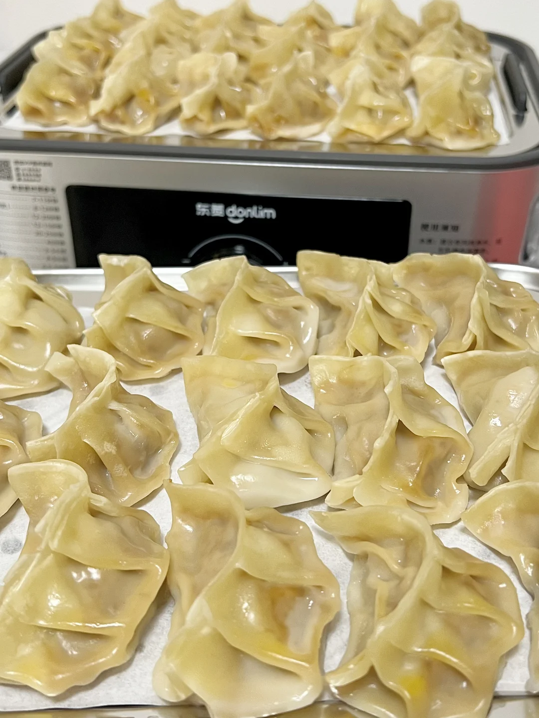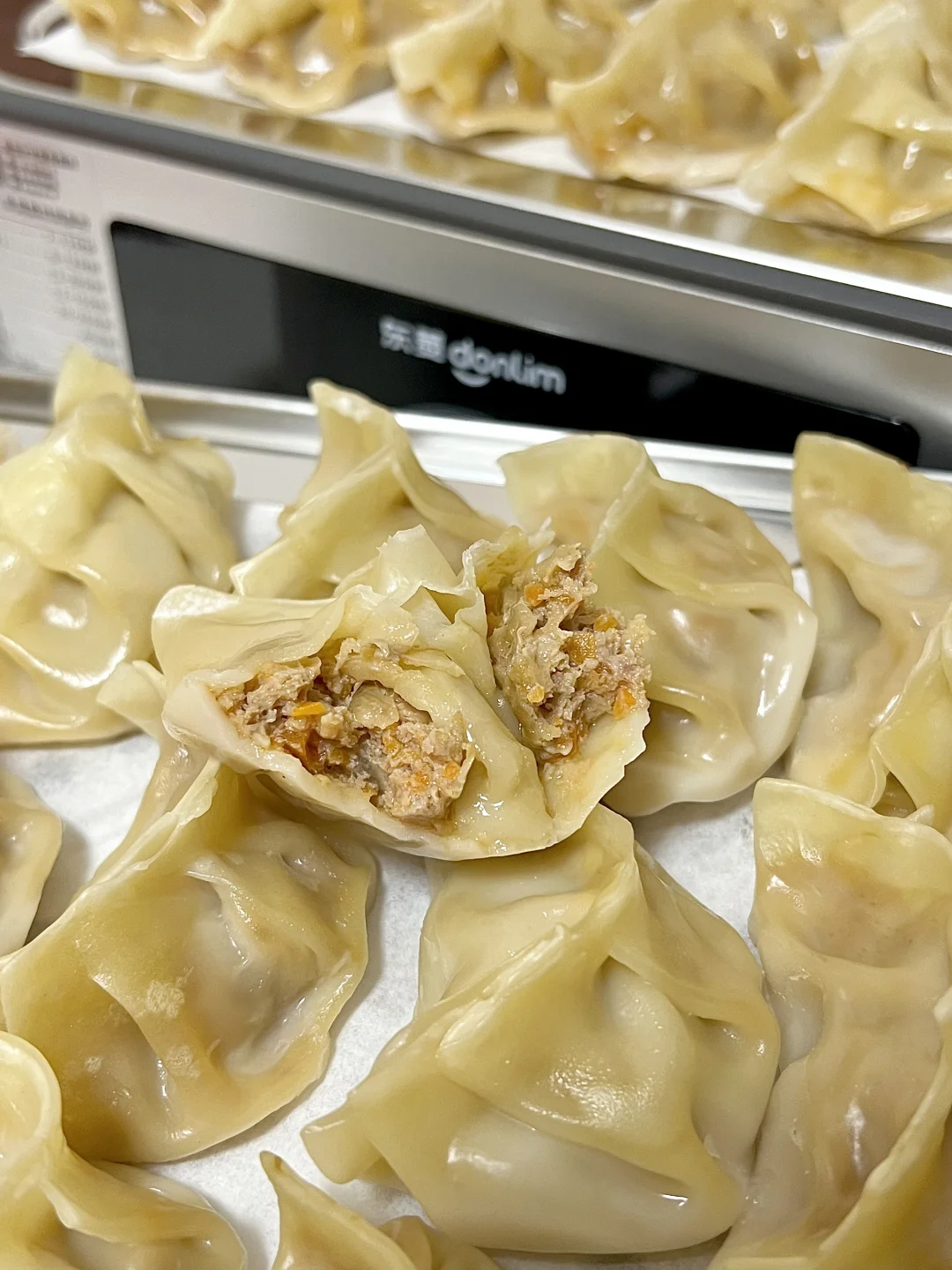 今天做了洋葱胡萝卜牛肉蒸饺,洋葱的鲜甜中和牛肉的醇厚,胡萝卜增添色彩和营养,一口下去肉汁迸发,小朋友大朋友都超喜欢💕 🥕食材准备(约40只) • 主料:牛肉馅600g(选肥瘦3:7的牛里脊,鲜嫩多汁不柴)、洋葱1个(中等大小)、胡萝卜2根(细款)、饺子皮40张(买现成或自制均可) • 调料:生抽2勺、蚝油1勺、盐半勺、鸡蛋1个,鸡精少许,白糖少许(提鲜)、白胡椒粉1小勺 🍳 制作步骤(全程40分钟,零难度!) 1️⃣处理食材 洋葱去皮切成碎末,锅里热油放入洋葱碎翻炒至透明,胡萝卜擦成细丝,再切成碎末,放入洋葱碎中翻炒一分钟关火 2️⃣调制牛肉馅 牛肉馅中加入生抽、白胡椒粉、白糖,用筷子朝一个方向用力搅拌,直到肉馅变得黏稠。分3次加入胡椒姜水,(胡椒粒和姜提前泡水)每次搅拌至水分完全吸收(打水让肉馅锁住汁水,口感更嫩) 3️⃣混合馅料 把洋葱碎、胡萝卜碎倒入牛肉馅中,继续朝同一方向搅拌均匀,馅料就做好啦 4️⃣包蒸饺,上锅蒸制 蒸锅中加水烧开,蒸屉上铺一层油纸防粘,将包好的蒸饺均匀摆好,饺子之间留少许空隙(避免蒸后粘连)。盖上锅盖,中火蒸12-15分钟 ✅蒸饺的灵魂在于“皮薄馅嫩、汁水不流失”,搭配东菱满堂红电蒸锅的高温速蒸黑科技,既能快速锁鲜,又能让馅料的鲜香彻底释放,还能实现“上蒸下炖”高效操作,新手也能轻松做出餐厅级美味,吃得健康又过瘾~