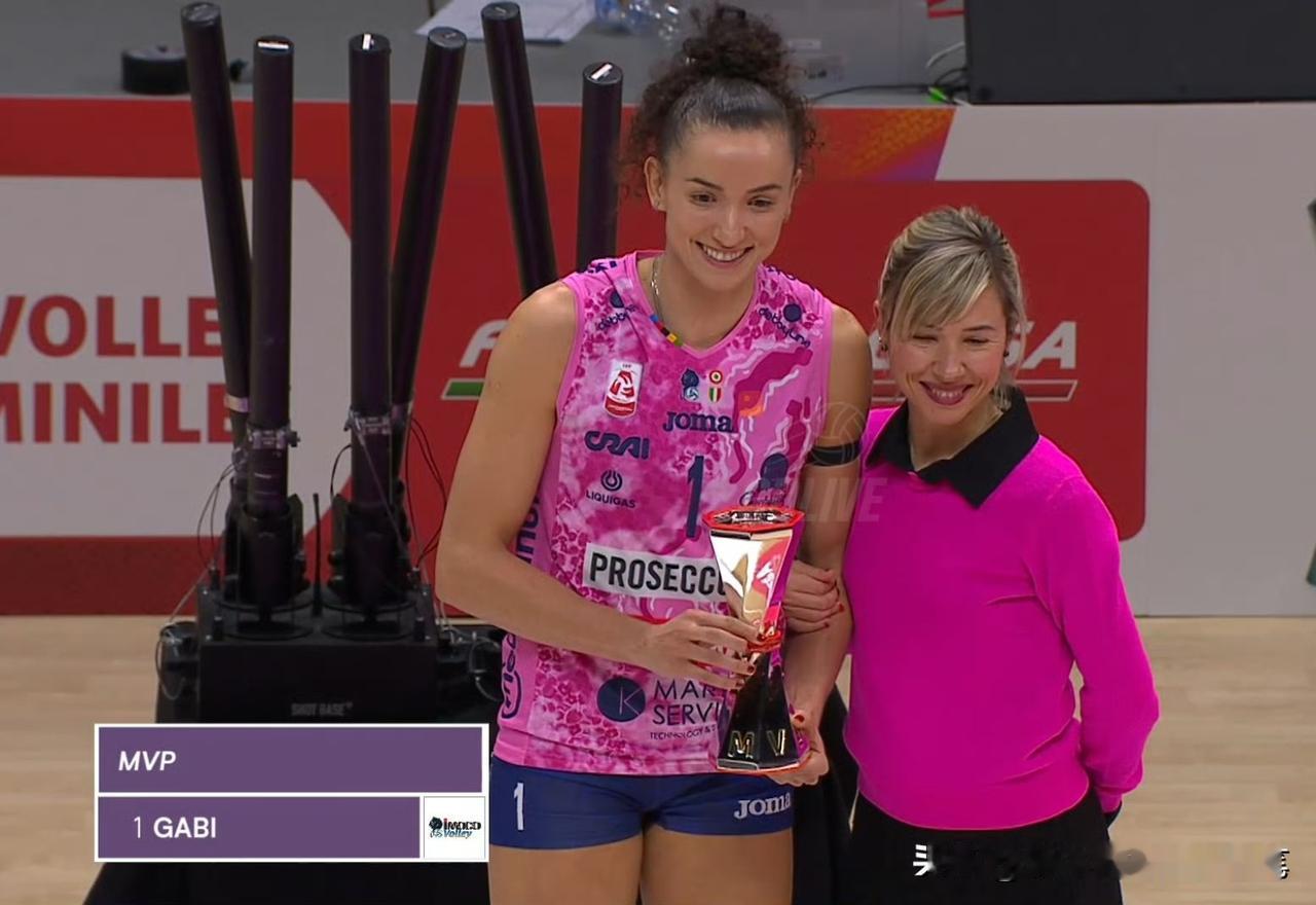 加比今晚打疯了,意大利杯最高分,不是朱婷,也不是哈克,MVP又发给了她[呲牙] 瞧,桑塔雷利轻摸着加比的头,给她肯定和鼓励,的确,加比连攻带拦,拿了全场最高分22,MVP没有悬念,加比今晚可谓打出了人生巅峰状态。就连专职进攻的哈克,得分也低于加比。其实朱婷发挥完全不逊色于加比和哈克,不是后排经常被换下的话,她的得分完全不止13。朱婷关键时候出色的表现,也配得上MVP。哈哈[呲牙],一起为她们祝贺吧排球运动员加比 女排加比朱婷意甲数据