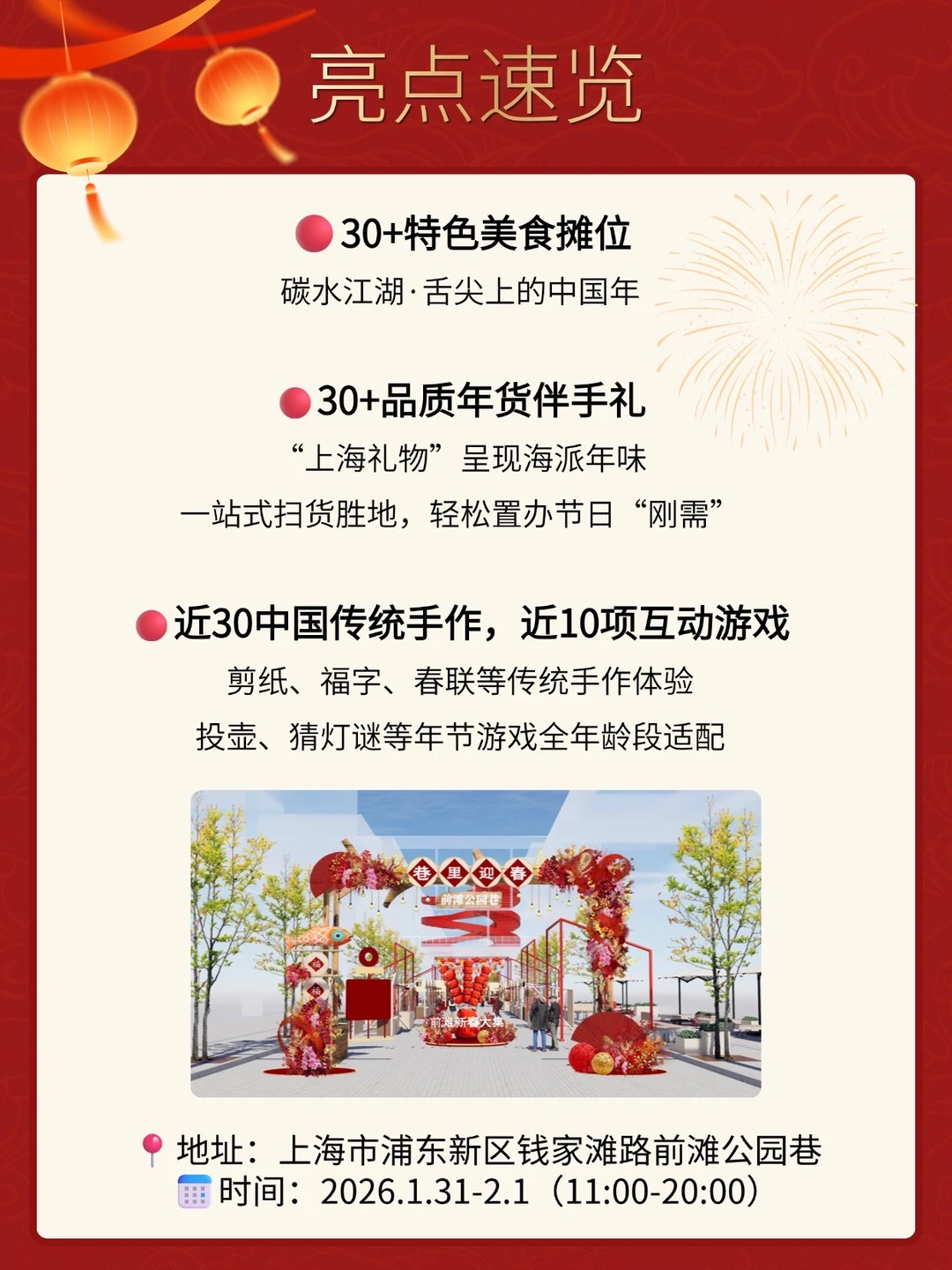前滩公园巷这次召集了100+摊位,带你穿越回记忆里的热闹春节🏮