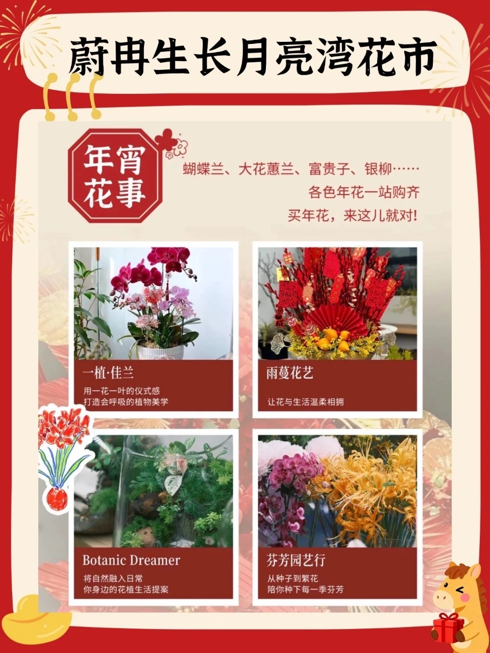 📍「蔚冉生长月亮湾花市新春集」1.30-2.8 月亮湾1楼广场