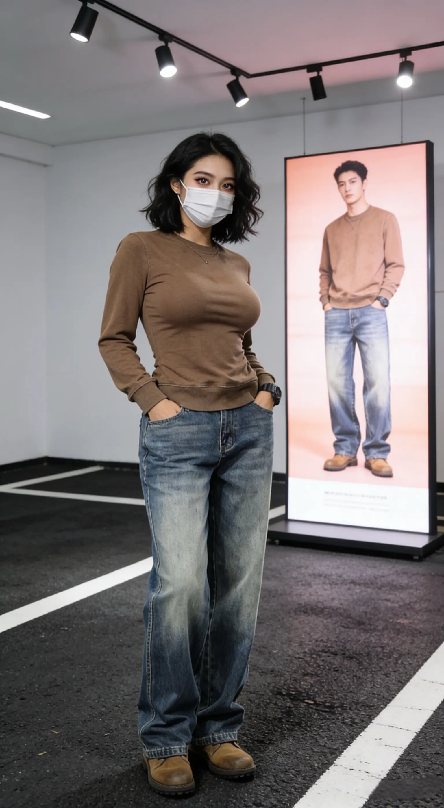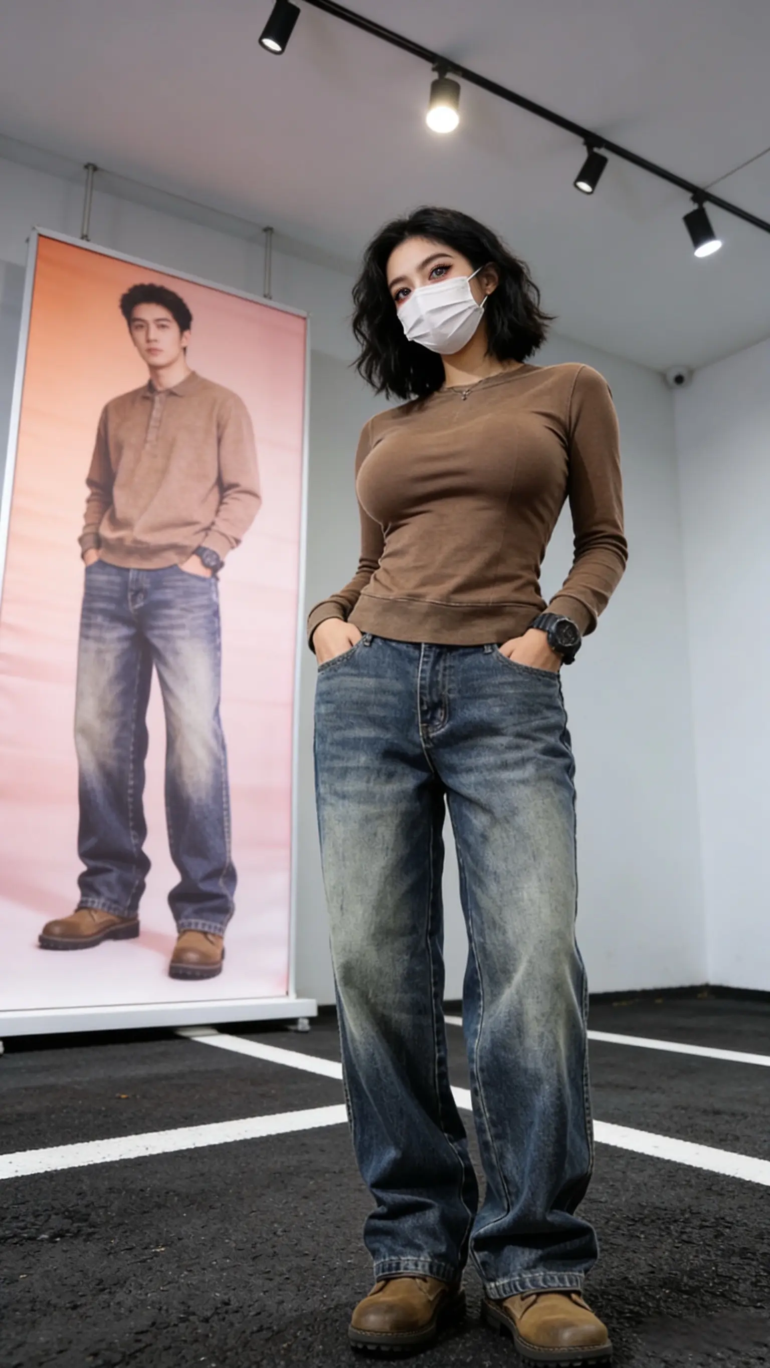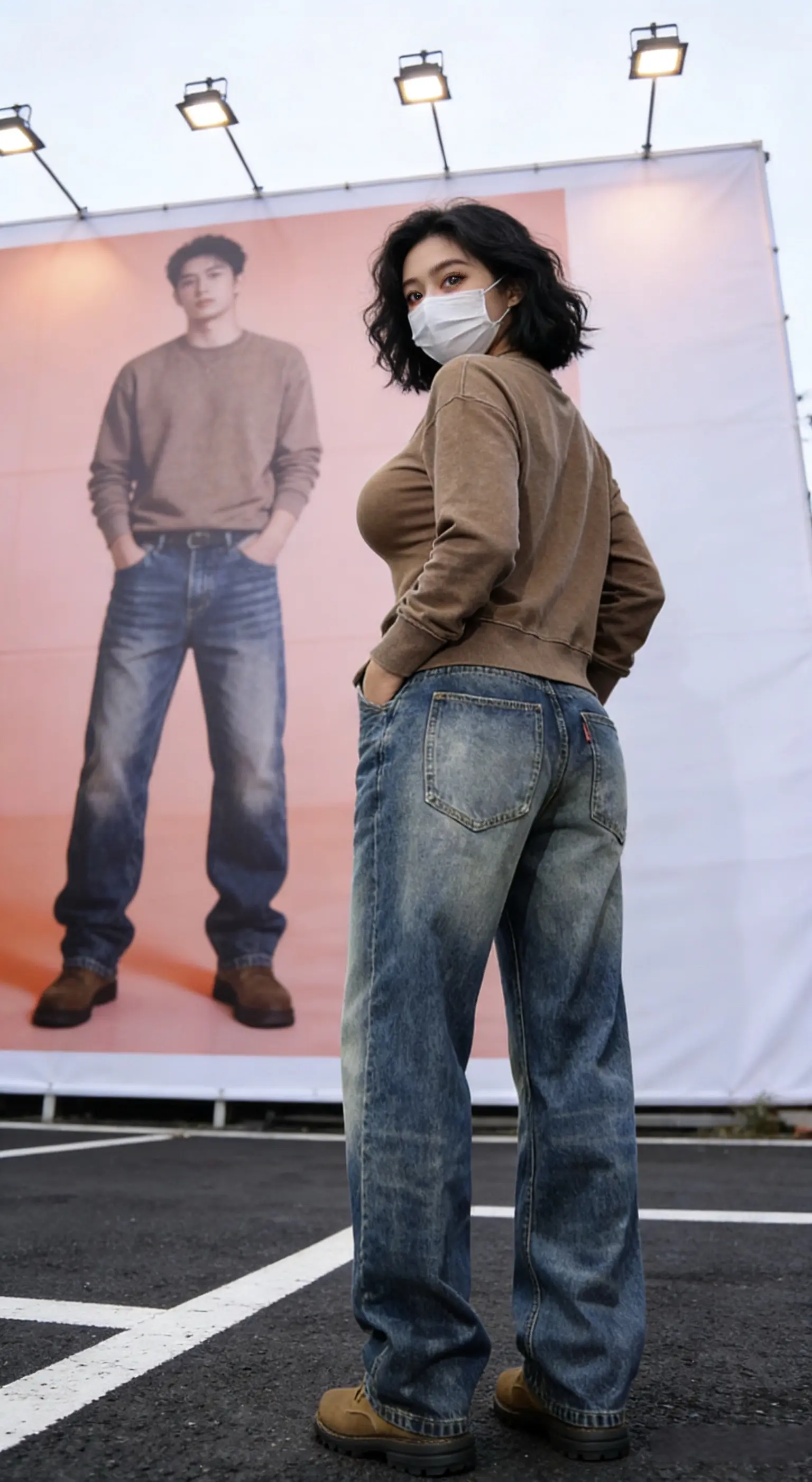 光之影&AI工业风少女,复古牛仔与现代涂鸦的完美碰撞!酷感牛仔女孩时尚牛仔