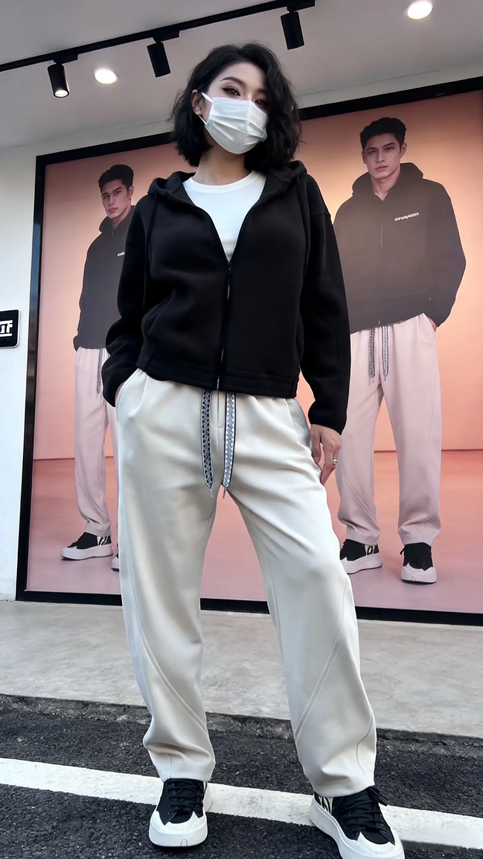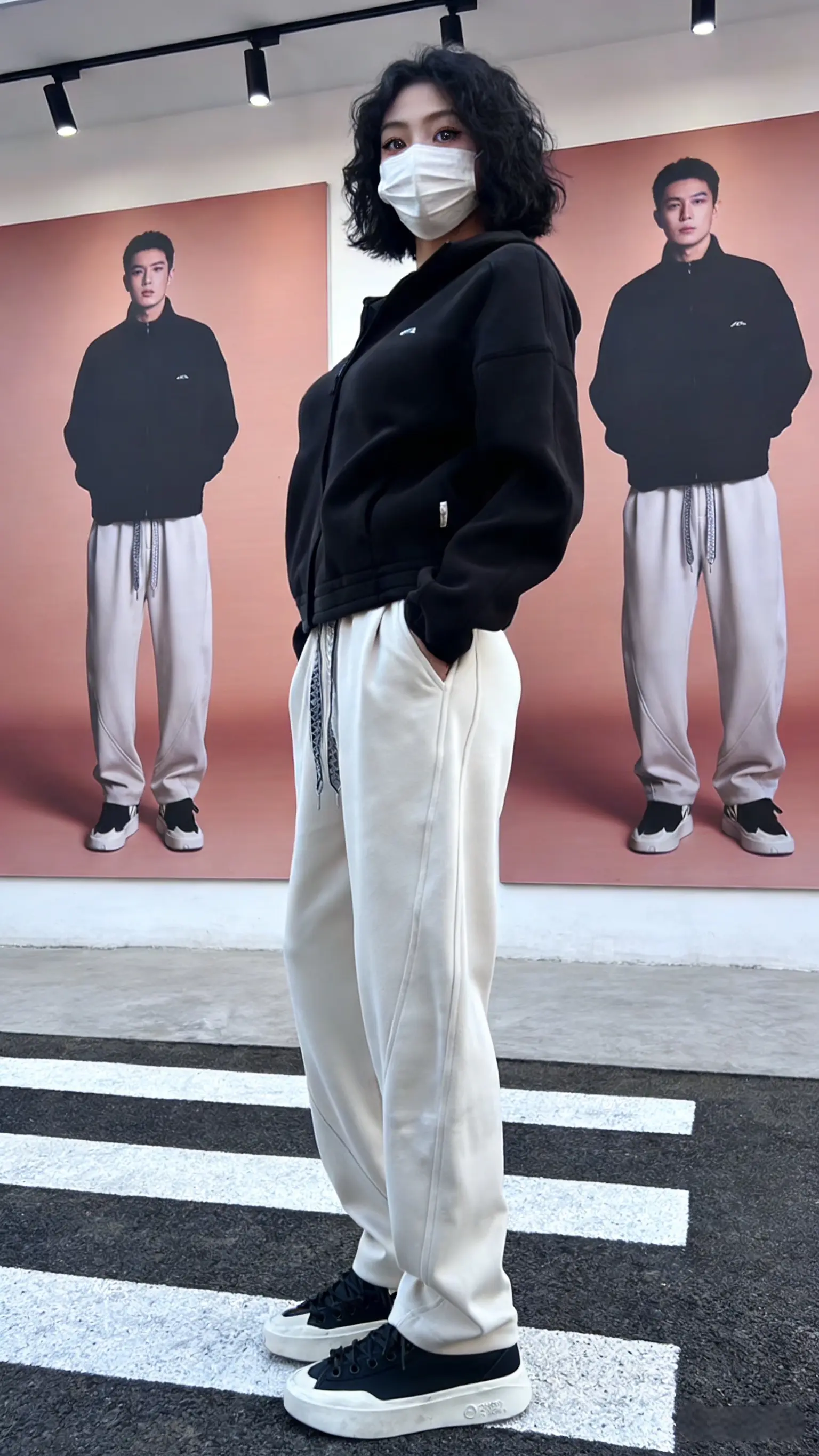 Entong美式潮牌解构针织卫裤男生松紧腰设计运动裤百搭直筒阔腿裤