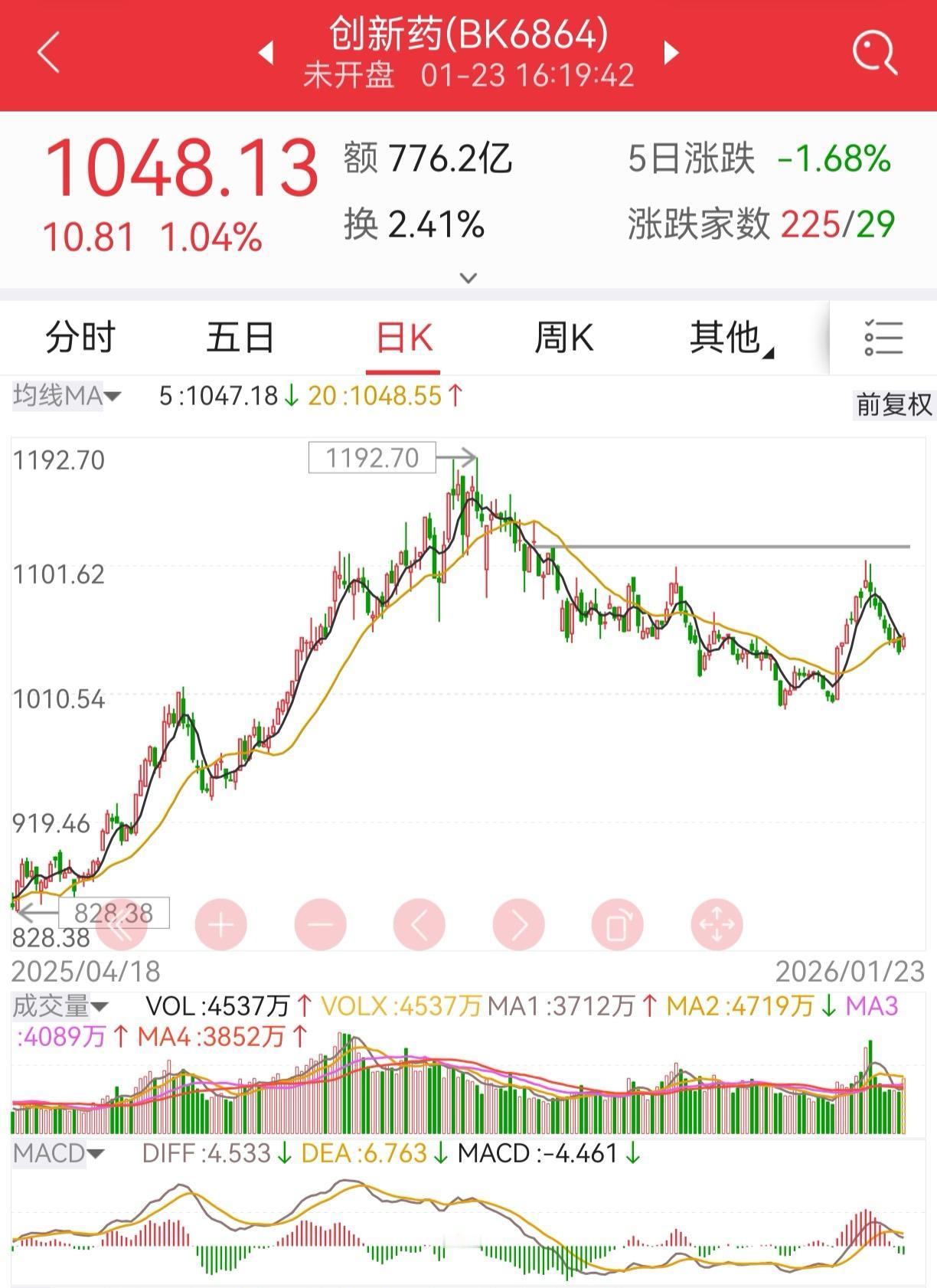 板块跟踪:锂电池、创新药 1、锂电池 一个小的头肩底形态,调整比较充分。周五电池板块大涨,如果能够继续上涨突破平台,就可能会去挑战前高了。今天如果放量突破,可以追,也可以回踩平台再加仓。 2、创新药 创新药板块比电池板块节奏要快一些,已经放量突破了,并达到了前期的小高点附近。现在正在回踩20日线。如果今天能收出一根放量阳线,站上20线,即代表回踩结束。目标也是前期高点。