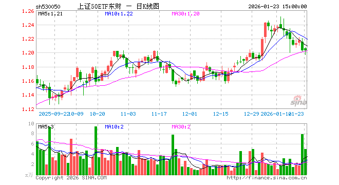 1月23日,上证50ETF东财(530050)涨0.00%,成交额601.95万元。当日份额增加100.00万份,最新份额为1.39亿份,近20个交易日份额减少900.00万份。最新资产净值计算值为1.66亿元。