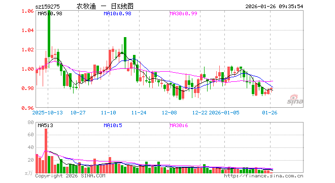 1月26日,农牧渔ETF(159275)开盘涨0.10%,报0.979元。农牧渔ETF(159275)重仓股方面,牧原股份开盘跌0.02%,温氏股份涨0.00%,海大集团涨0.49%,正邦科技跌0.30%,新希望涨0.12%,梅花生物涨0.00%,生物股份涨1.96%,大北农涨0.00%,隆平高科跌0.10%,北大荒涨0.06%。