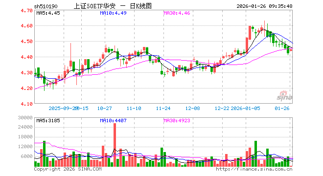 1月26日,上证50ETF华安(510190)开盘涨0.36%,报4.436元。上证50ETF华安(510190)重仓股方面,贵州茅台开盘涨0.26%,中国平安涨0.16%,紫金矿业涨3.14%,招商银行涨0.00%,兴业银行跌0.05%,长江电力涨0.19%,寒武纪跌0.75%,中信证券涨0.00%,恒瑞医药涨0.00%,工商银行跌0.28%。