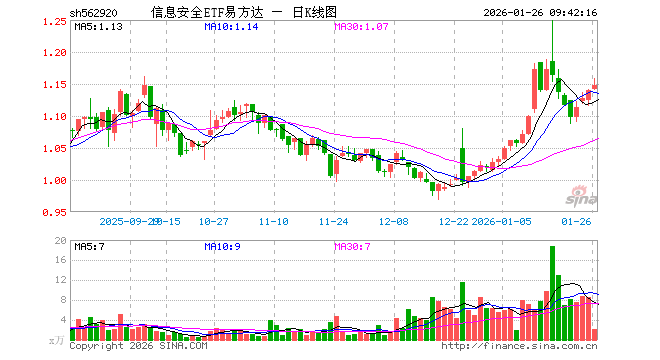 1月26日,信息安全ETF易方达(562920)开盘涨0.09%,报1.141元。信息安全ETF易方达(562920)重仓股方面,浪潮信息开盘涨0.32%,紫光国微涨0.01%,海康威视涨0.31%,紫光股份跌0.11%,三六零涨0.00%,中科曙光涨0.39%,大华股份跌0.33%,国盾量子跌0.45%,深信服涨5.30%。