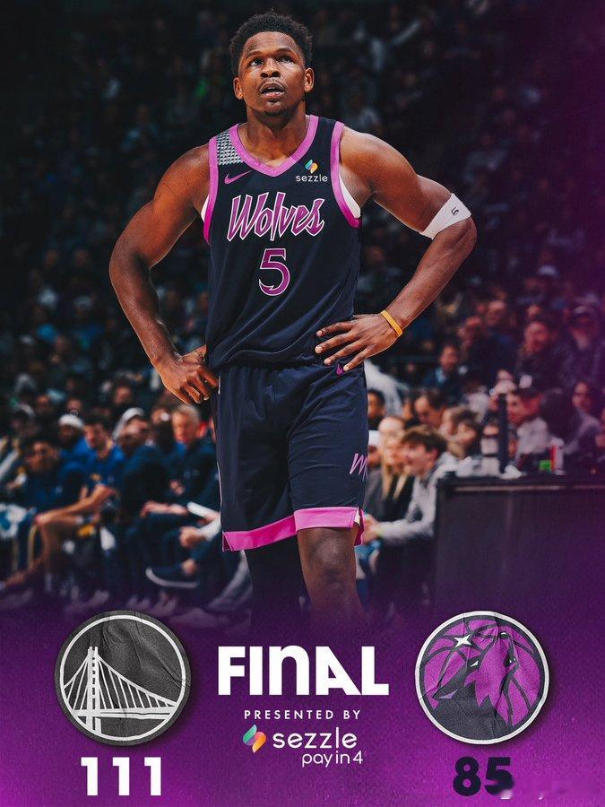 狼狈不堪!勇士战胜森林狼 在经历了胶着的上半场之后,第三节勇士开启了暴走模式,全队多点开花,单节轰出38-17的超级攻击波,让比赛瞬间失去了悬念!没了巴特勒,就连库明加都不打,对勇士的进攻来说,影响还是很大的,但是“勇三疯”传统依旧,极致的小,极致的快,极致的准,让疯狂输出可以持续,让疯狂输出势不可挡,但这真的可以场场延续吗?森林狼的表现让人失望,全队25次失误,被对手抢断了20次,即便爱德华兹拿下32分,也依旧无法挽回颓势。森林狼已经5连败了,他们上一次遭遇5连败还是在2022年;排名也掉落到西部第7,如果明天再输勇士,真得要被对方追上了啊!明天两队还将继续对决,剧本会不一样吗?
