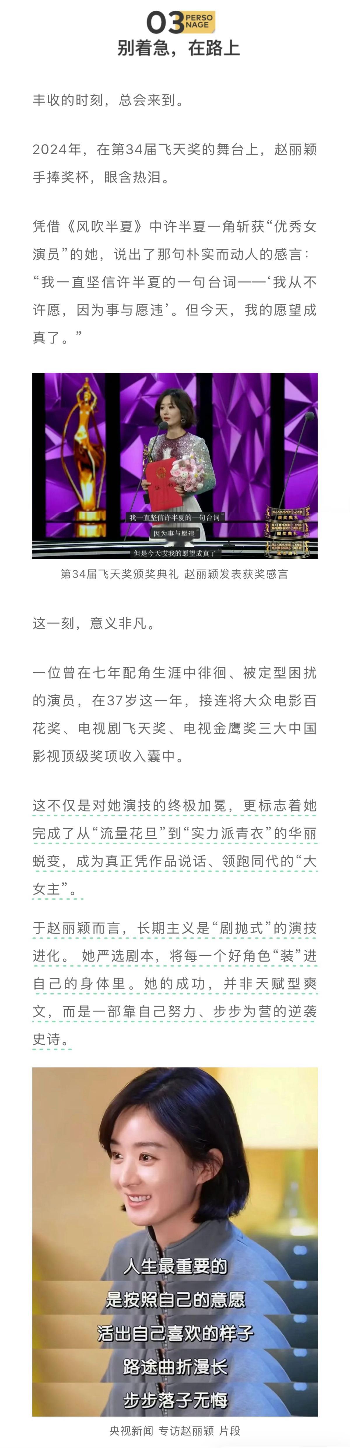 非科班出身,7年龙套生涯,不断掉落的质疑……回望来时路,作为演员赵丽颖走得坎坷。但她却从未想过放弃,而是在一个个角色中,打磨自己。“别人都不看好你,偏偏你最争气”刷屏全网。这是属于赵丽颖的叙事。正如她曾说的那句:“在路上,别着急”,有时候慢一点,反而比较快。