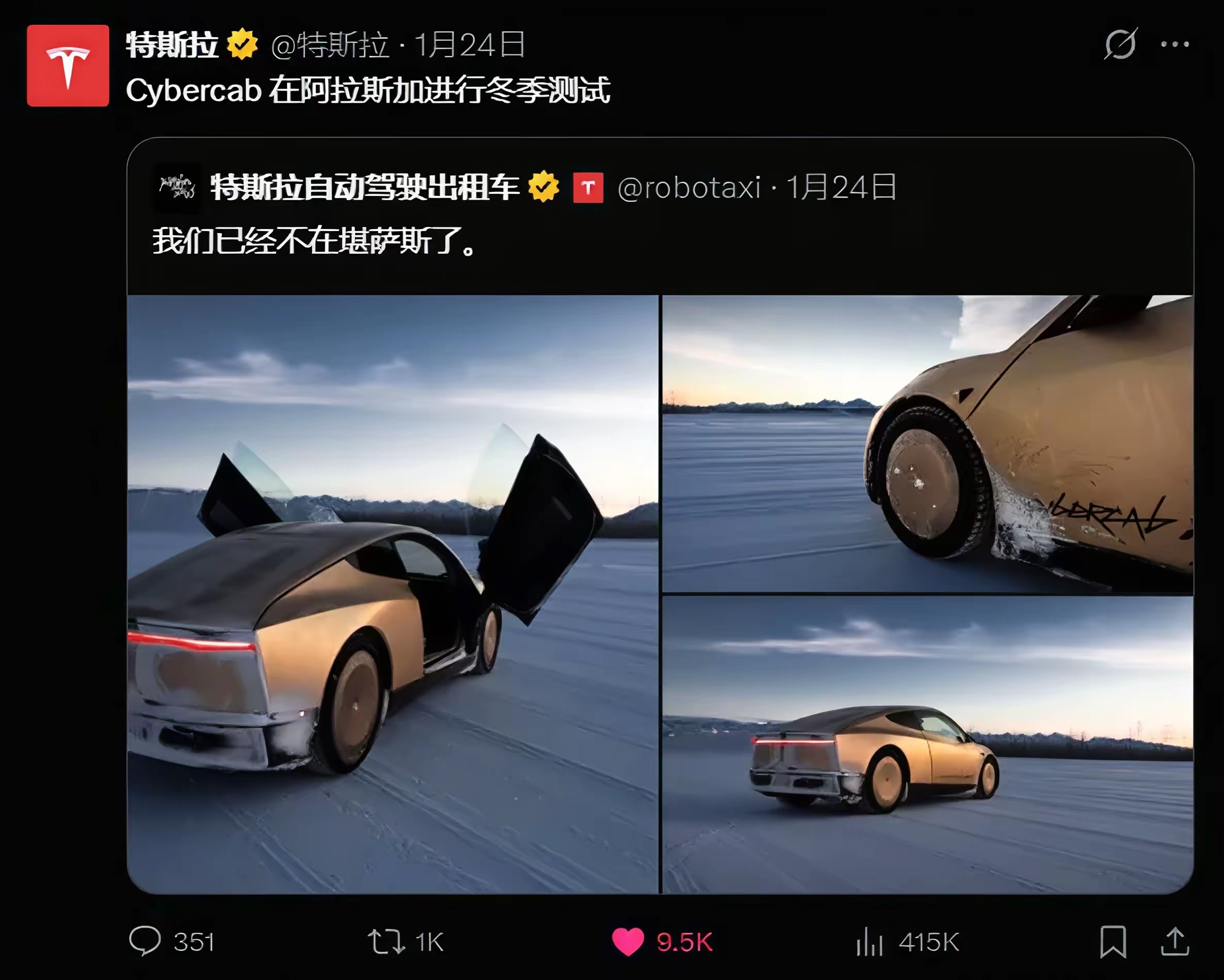 为了加快Cybercab无人驾驶出租车商用的节奏,特斯拉冬测也在进行着,这次冬测释放的信号远不止好看,是对智能驾驶电动车技术压力测试阿拉斯加的冬季提供了自动驾驶最严苛的考场。低温对电池的考验、积雪对摄像头感知系统的干扰、冰面对轮胎和车辆稳定控制系统的极限挑战。特斯拉选择主动公开是对自身全自动驾驶系统在极端环境下的可靠性的自信展示马斯克的目标是将成本控制在3万美元以下,并计划于2026年投入生产。是特斯拉押注未来出行的关键一步,也是在2025年销量下滑之下的又一提振用户信心的重要举措,只是让人们都接受这一前沿出行方式的时间成本还没有一个固定的标准……
