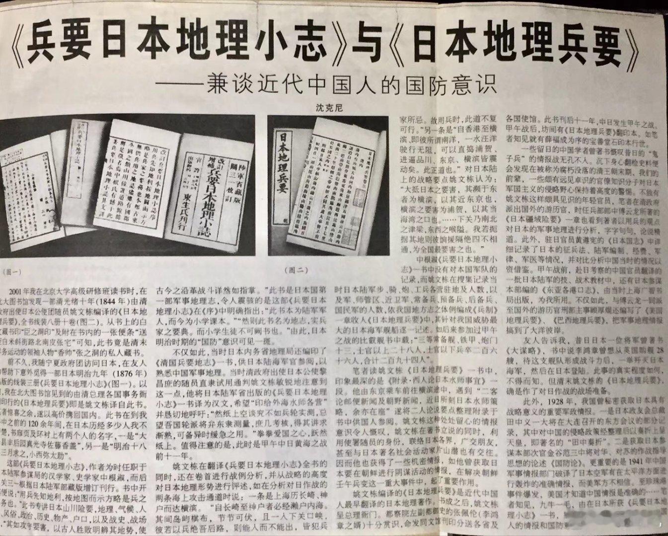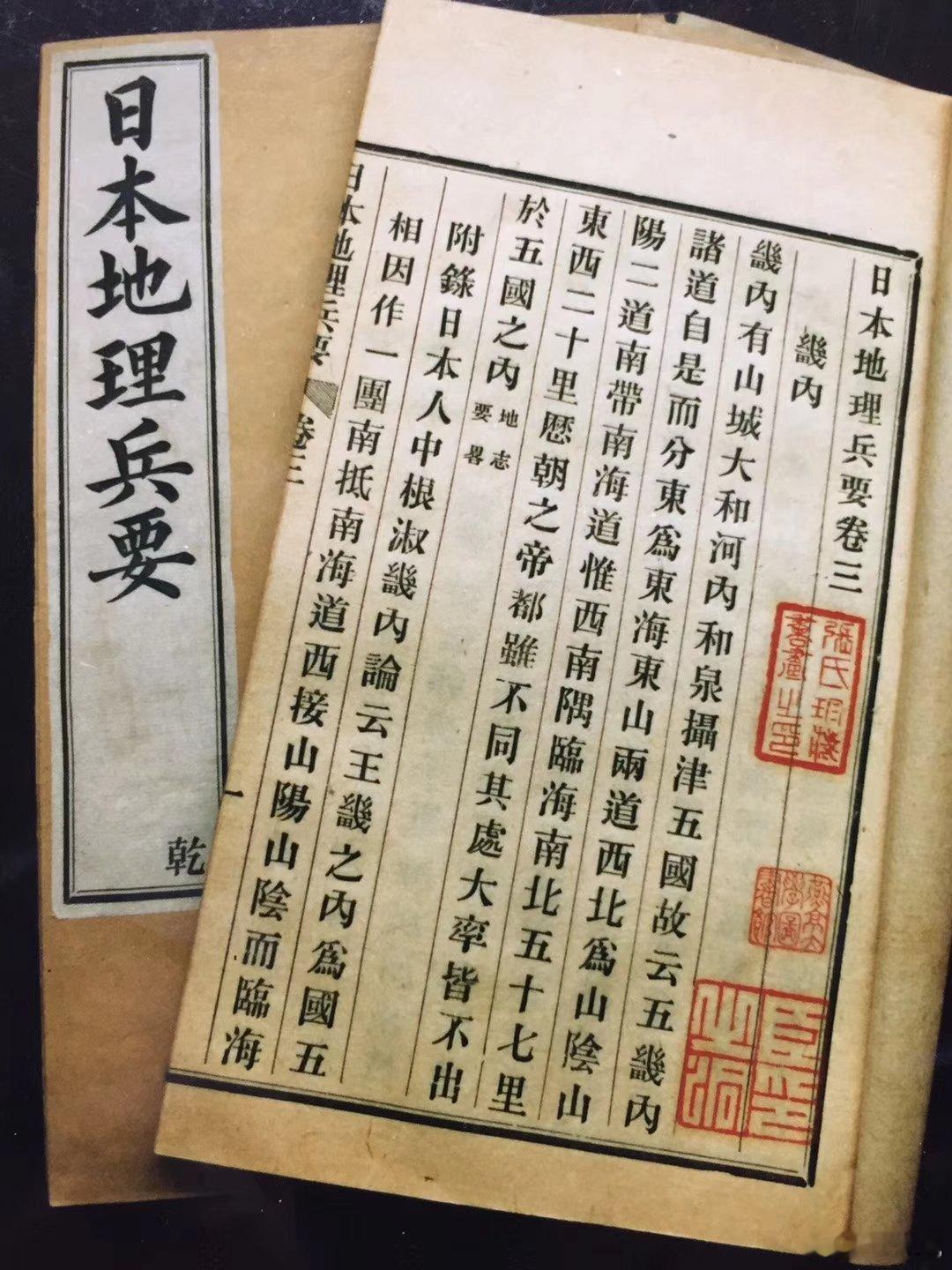 继我获《兵要日本地理小志》一书20多年后,今又获日本1876年编译的《兵要万国地理小志》一套六册。此书是明治九年日本法学家近藤圭造编译西方的世界地理。 2001年9月,我在北京大学高研班学习三个月,住在芍园研究生楼。这是我此生中最快乐的时光之一(当然还有2005年在国防大学的学习)。北大图书馆是我常去之处,我在馆中找到清末中兴名臣张之洞的藏书《日本地理兵要》(图5),此书是清末驻日大使黎昌庶的随员姚文栋据日文《兵要日本地理小志》译编。我逃课在北大图书馆摘抄此书的笔记,我惊讶的发现,在被称为腐朽没落的清政府,竟有姚文栋这样的文官在甲午之战前十年,研究对日本作战的海、陆攻击通道。我遂在当时《宁夏日报》撰文发表《日本地理兵要一兼谈近代中国人的情报意识》。这是我在北京大学学习的最大收获。 往事不可追。今获日本百余年前的《兵要万国地理小志》又能得何种启发?