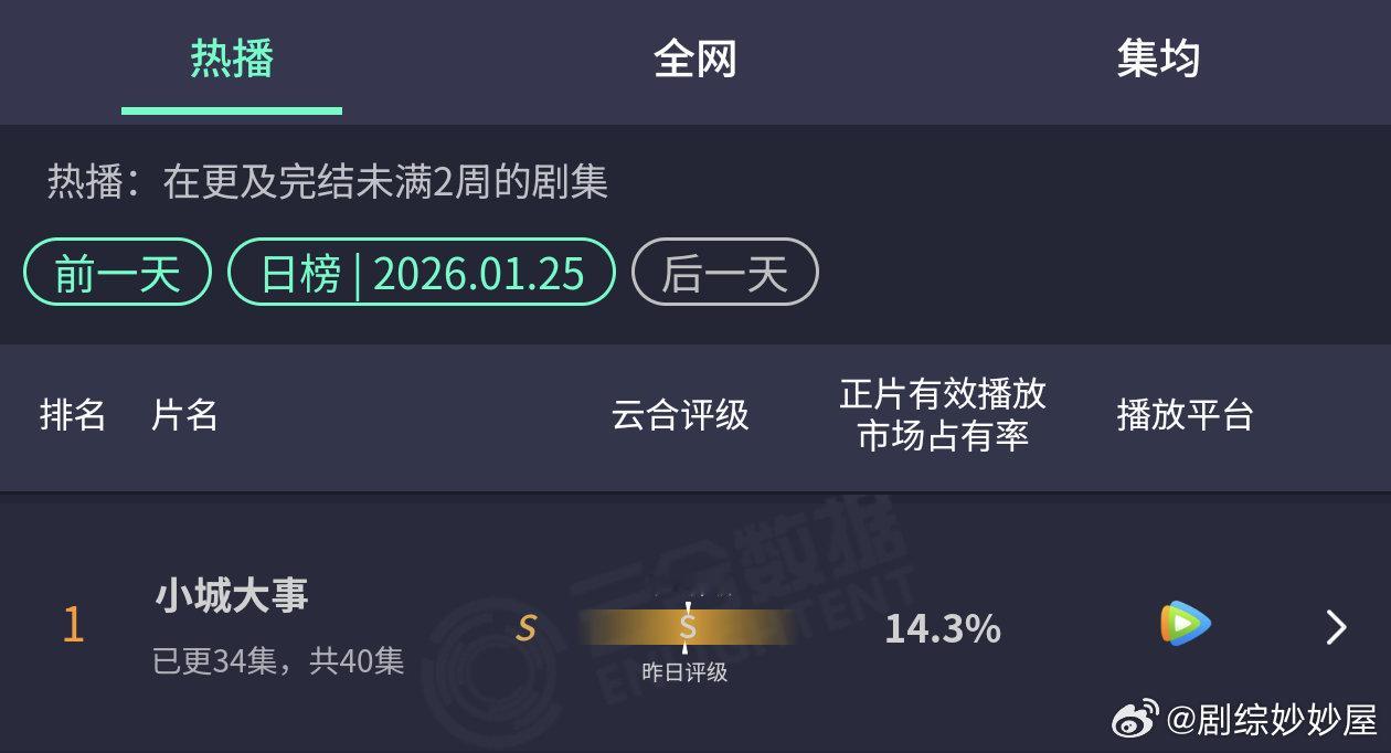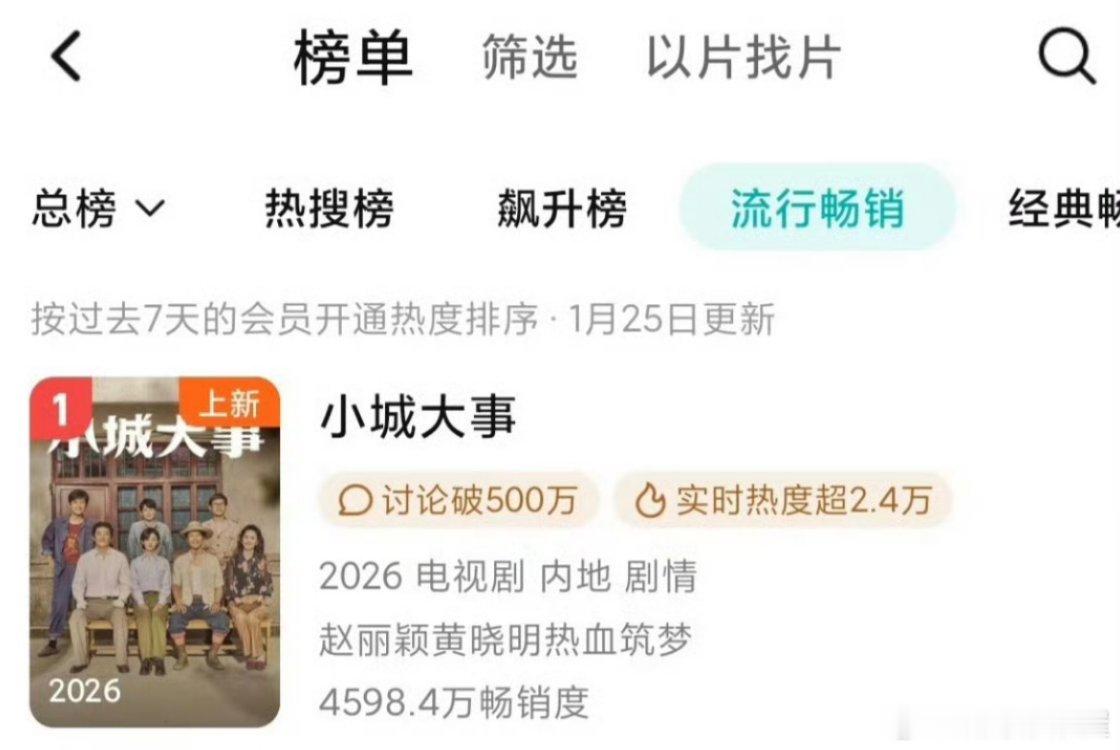 赵丽颖《小城大事》登腾讯畅销榜top1,昨日云合14.3%也是top1牛牛的