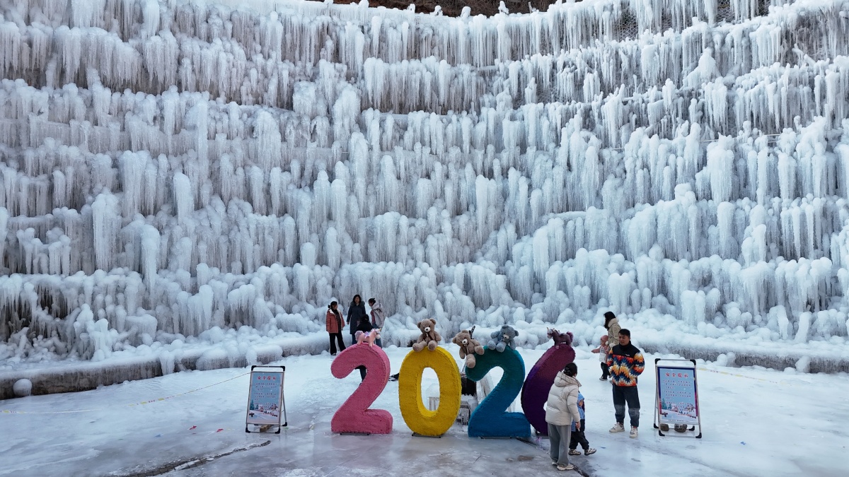“一沟”八里沟以“雪景+冰挂+娱乐”为核心,将太行峡谷的自然禀赋与冰雪创意完美融合,打造沉浸式赏玩秘境。冬日的八里沟,整面山崖的瀑布被严寒定格成百米冰挂奇观,阳光斜射时折射出蓝宝石般的剔透光泽,冰柱、冰幔、冰帘层层叠叠,构成凝固的冬日史诗。