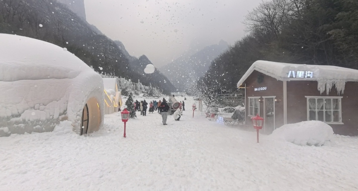 雪后的峡谷银装素裹,雾凇琼枝与红石崖壁相映成趣,猴群在林间嬉戏、鸟鸣在山谷回荡,让寂静的冬日充满生机与野趣。除了自然景观,景区还设置多元娱乐体验,游客可在冰雪步道上漫步赏景,在指定区域参与戏雪互动,在冰挂下打卡拍照,实现“赏冰雪之美、享娱乐之趣”的双重体验,成为家庭游、闺蜜游的优选目的地。