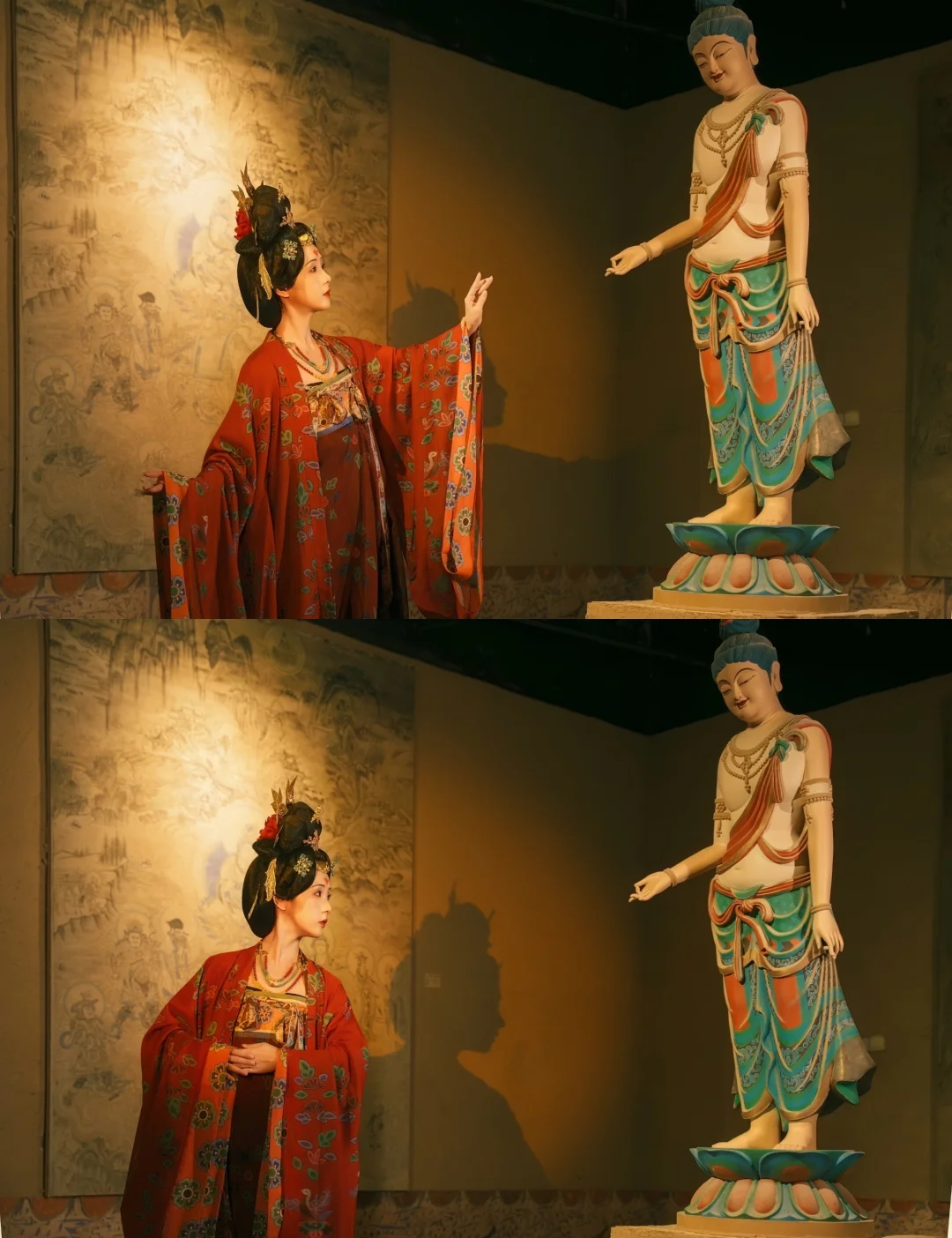 1:1复制了莫高窟不同时代的8个代表性洞窟(如第275窟、第285窟、第419窟等)。可以近距离仔细观看,而且还原度极高。