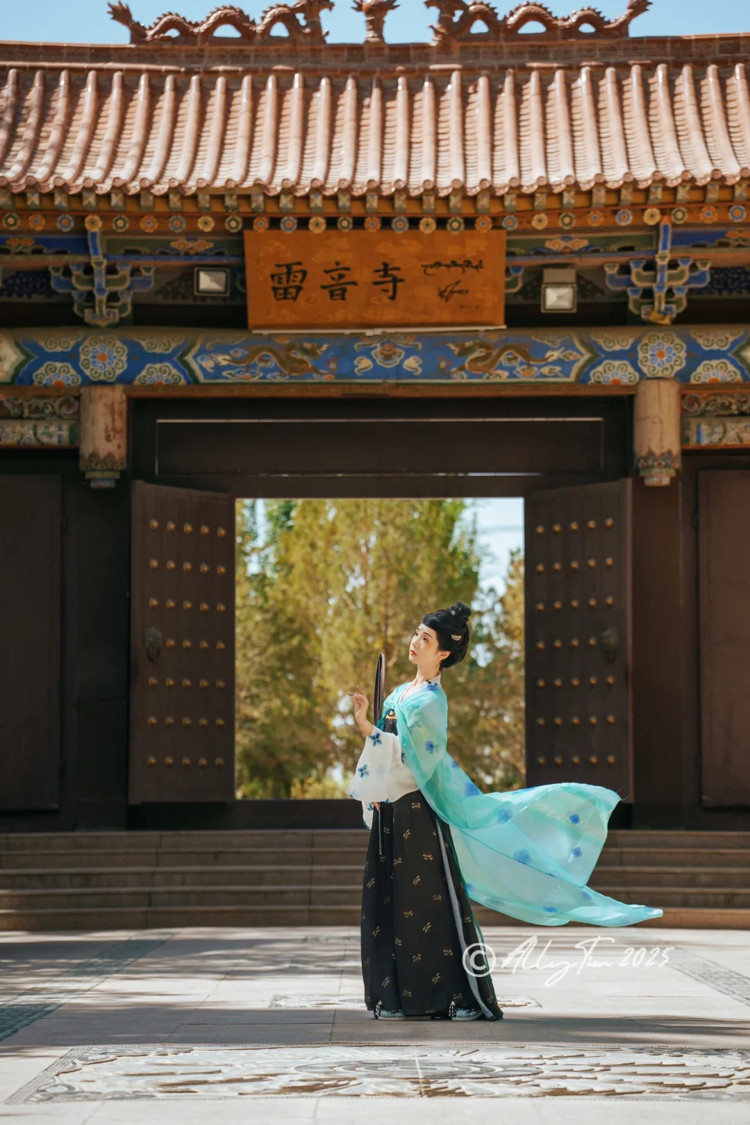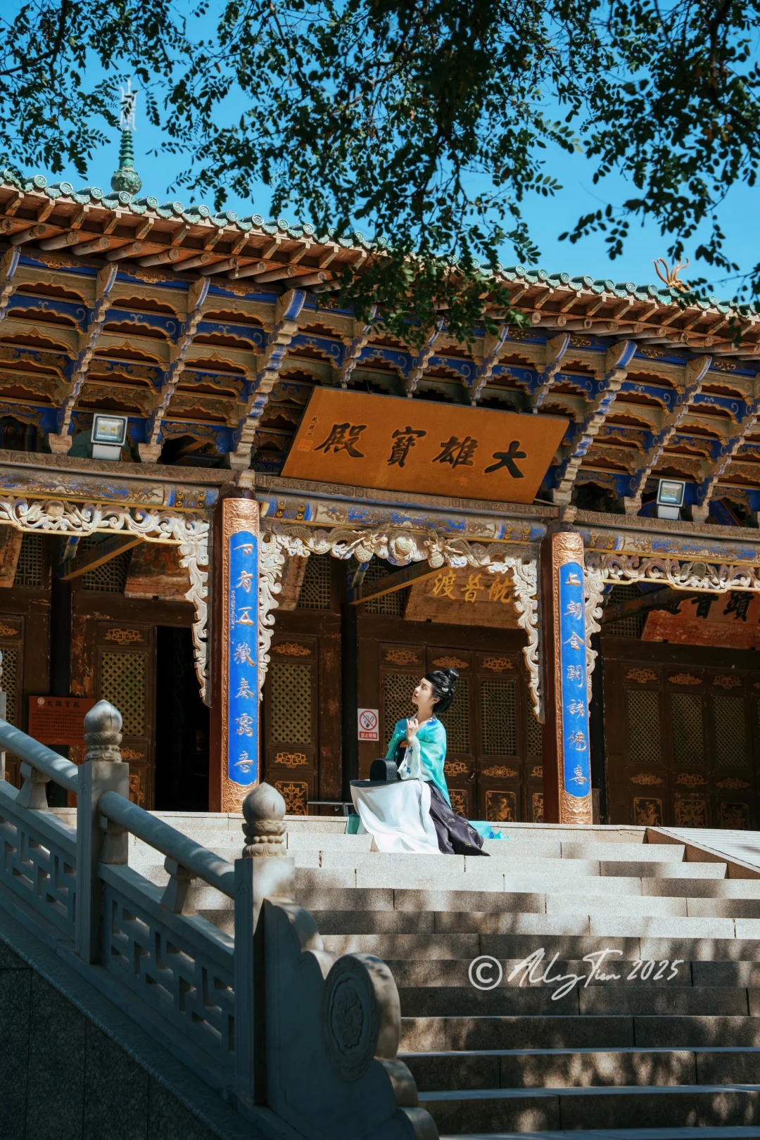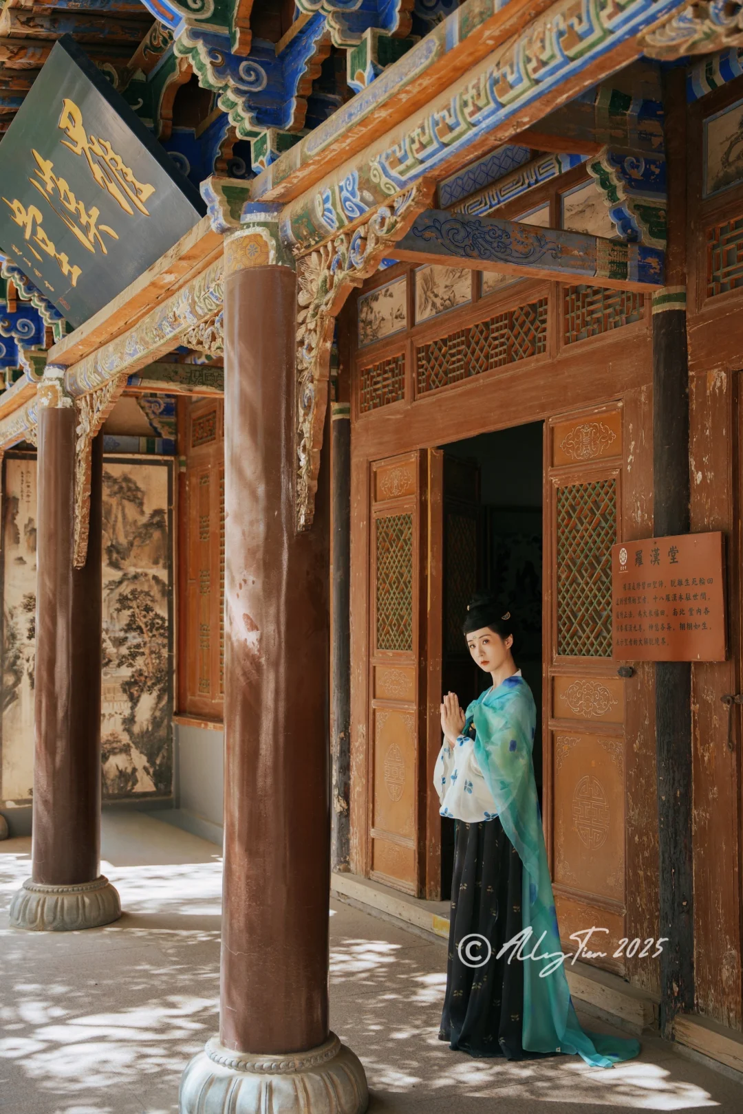 ▪️雷音寺对汉服的包容度很高,复原风格不论色彩都适合,因为有屋檐、树荫遮挡,相比沙漠拍照更容易,但早晚时分斜斜的光能穿过长廊