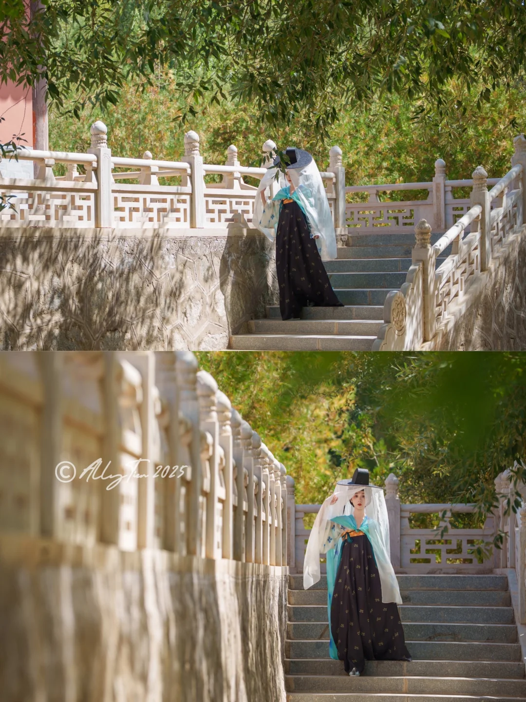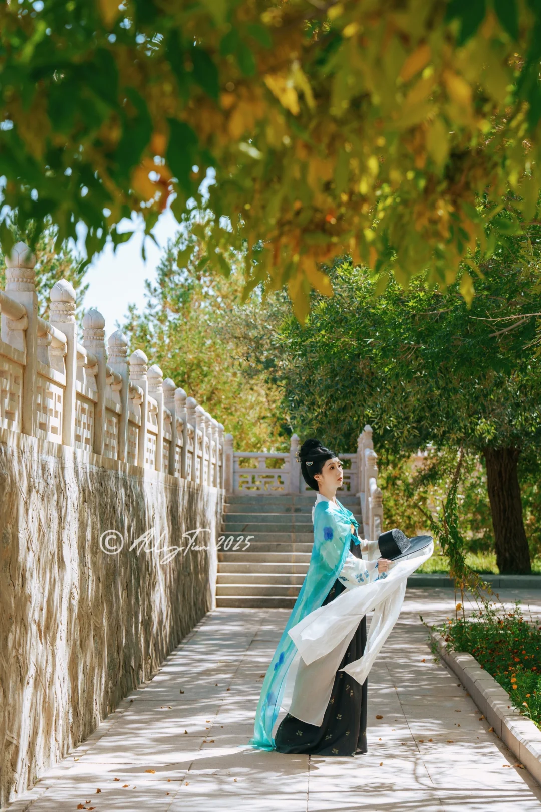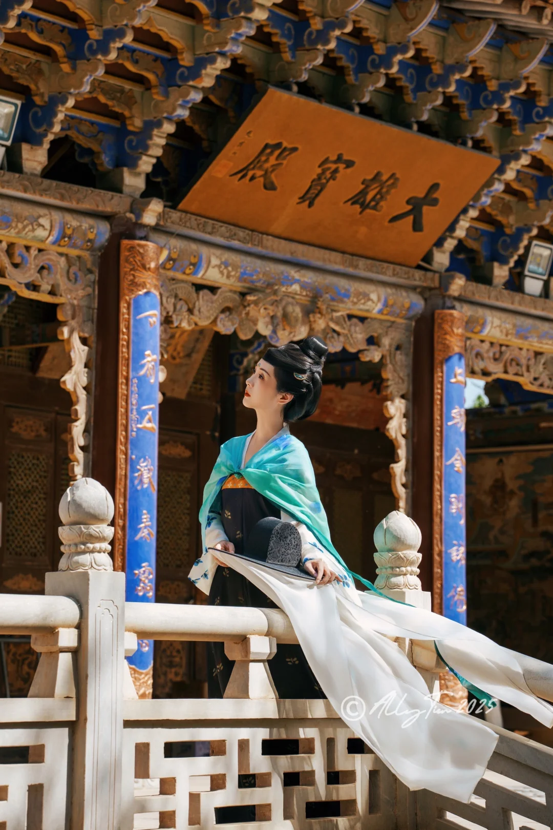 ▪️雷音寺对汉服的包容度很高,复原风格不论色彩都适合,因为有屋檐、树荫遮挡,相比沙漠拍照更容易,但早晚时分斜斜的光能穿过长廊