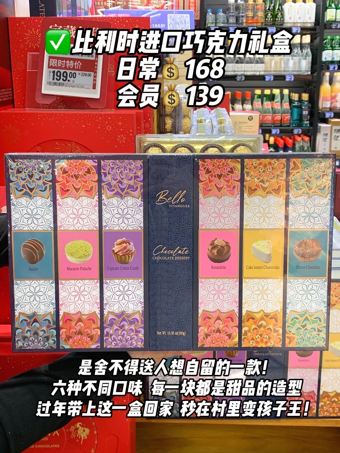 ✅比利时进口巧克力礼盒:是舍不得送人想自留的一款!六种不同口味的巧克力,每一块都是甜品的造型,根本舍不得吃!过年带上这一盒回家,秒在村里变孩子王!